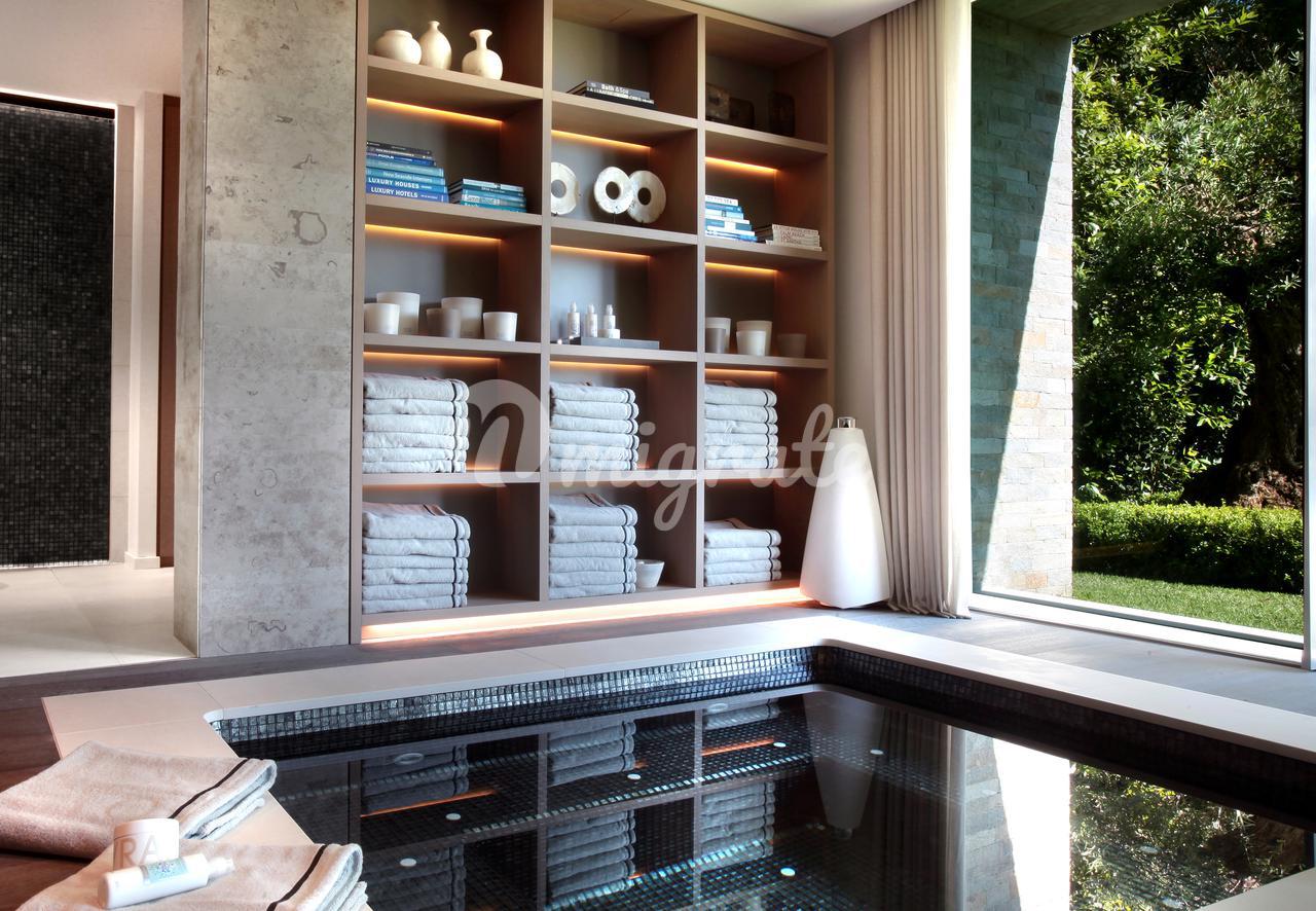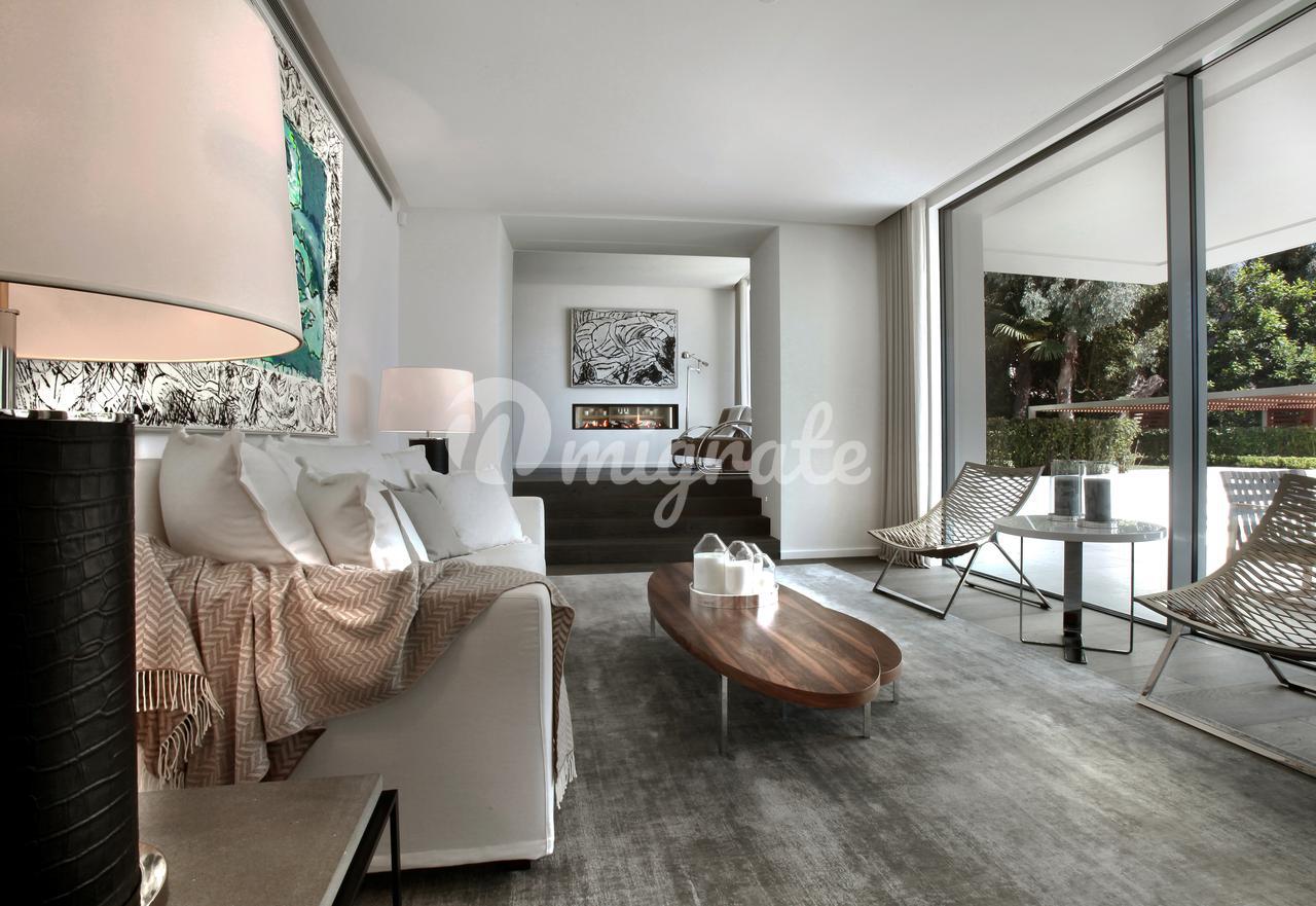 Основная вилла состоит из двух гостиных с камином, столовой, полностью оборудованной кухни, нескольких террас, главной спальни, 4 гостевых спален, современного оборудованного винного погреба, домашнего кинотеатра и спа-центра площадью более 100 кв. м с тренажерным залом, сауной и джакузи.
