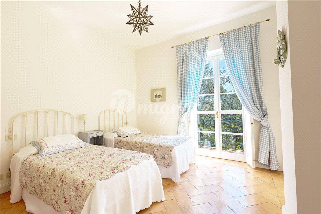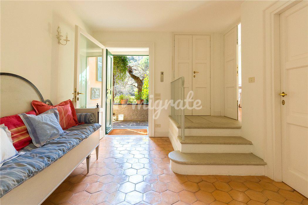Роскошная вилла расположена на побережье в Санта-Маргерита-Лигуре, в 2 км от центра города и 2,5 км до центра Портофино. Расстояние до аэропорта Генуя составляет 40 км. Вилла полностью отреставрирована. На первом этаже находятся несколько гостиных, две кухни, гостевой санузел, апартаменты для персонала со спальней, ванной комнатой и прачечной. На первом этаже расположены два отдельных входа и две лестницы.