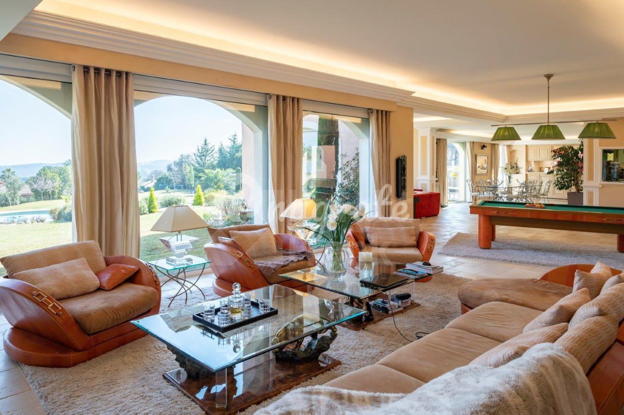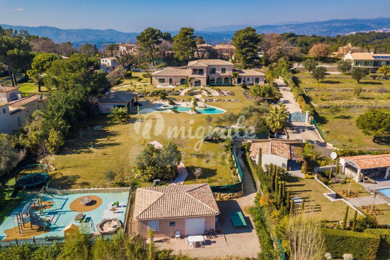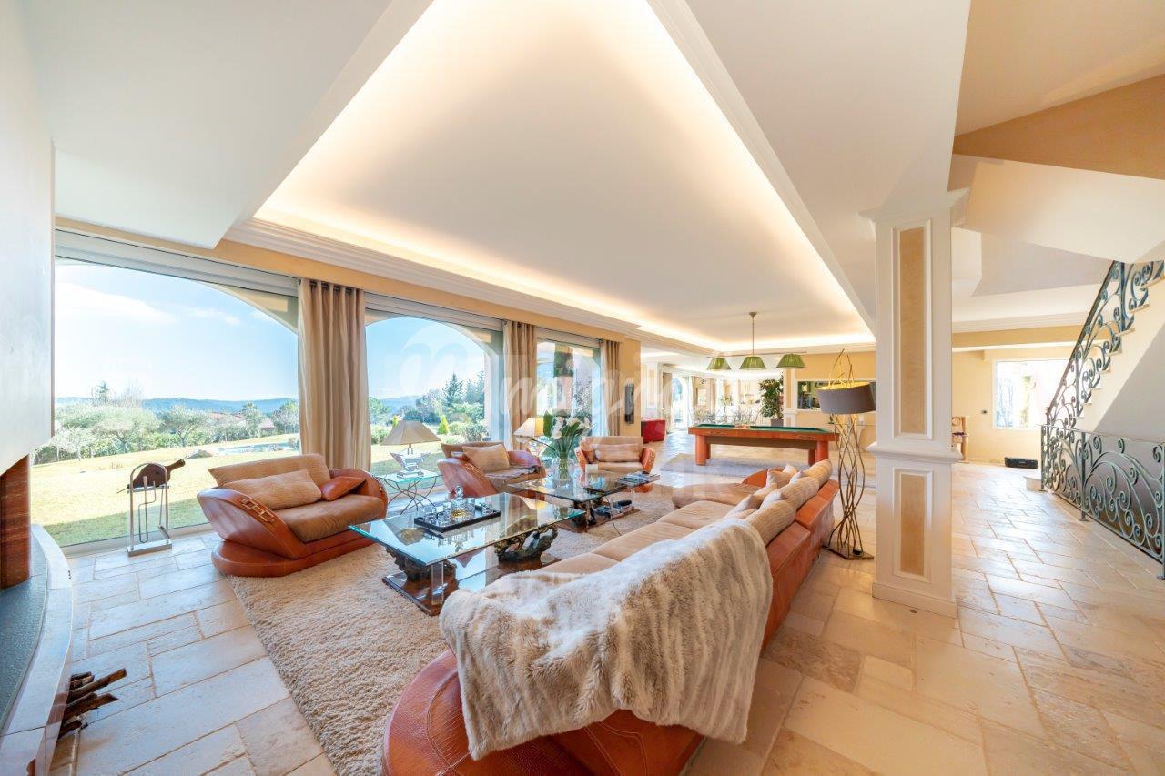 На участке находится полностью оборудованная детская площадка для детей в возрасте от 6 месяцев до 14 лет, дом для персонала с 2 спальнями, кухней и ванной комнатой, паркинг на 12 автомобилей и двойной гараж. Техническое оснащение включает лифт, сигнализацию, автоматические ворота.