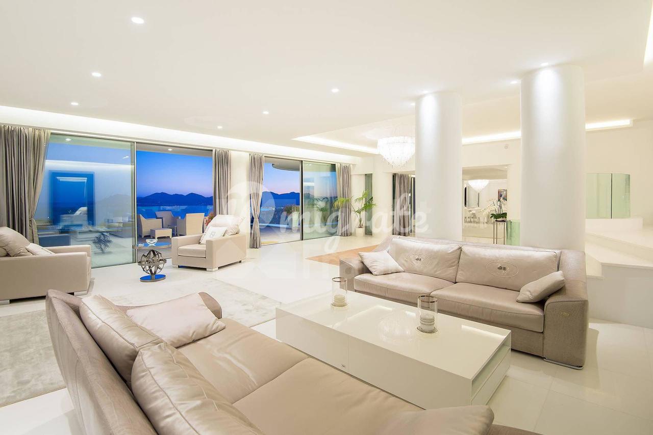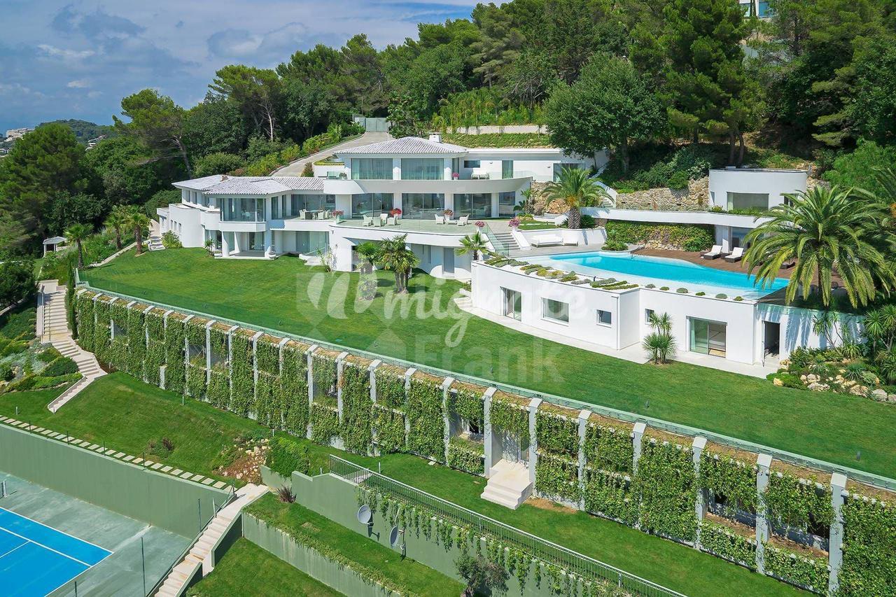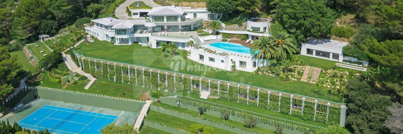 Основная вилла включает 8 спален с ванными комнатами и 10 дополнительных спален в других зданиях. На участке расположен бассейн, теннисный корт и гараж на 8 автомобилей.