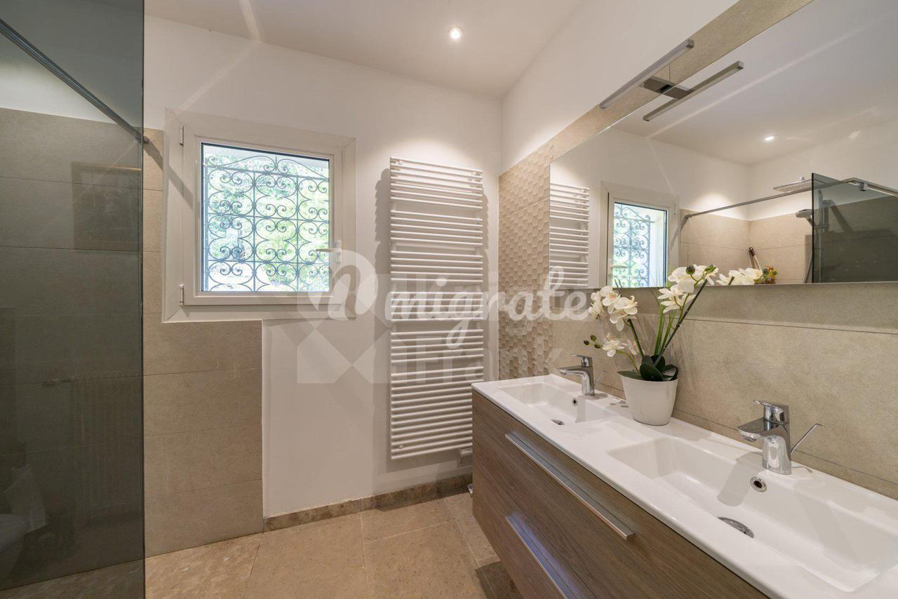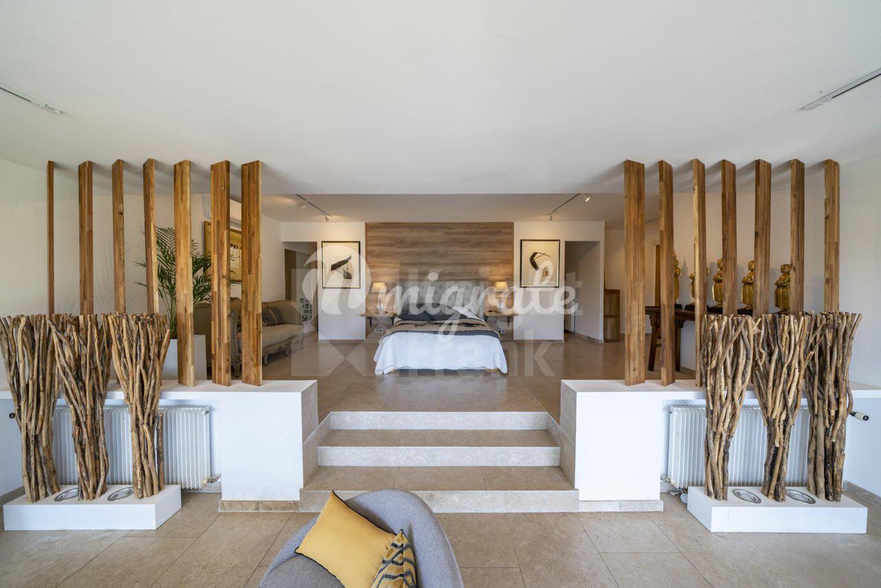 Вилла включает гостиную, столовую, полностью оборудованную кухню, 5 спален, 5 ванных комнат, кабинет, тренажерный зал.