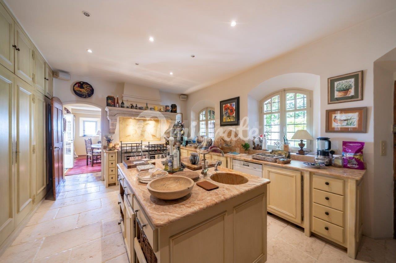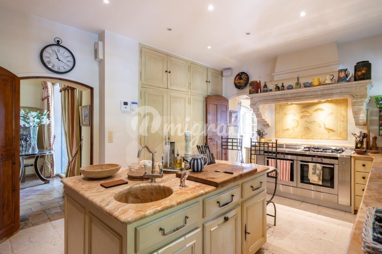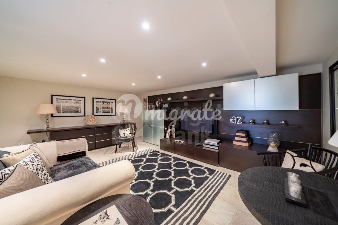 Основной дом состоит из прихожей, гостиной, просторной кухни, столовой, кабинета, основной спальни с террасой, 3 спален с ванными комнатами, зимней лоджии с камином, домашнего кинотеатра, еще одного кабинета и винного погреба. Также на вилле находятся отдельные независимые гостевые апартаменты с 1 спальней, ванной комнатой и гостиной, гостевой дом для персонала с 2 спальнями, летняя кухня, бассейн и парковка на несколько автомобилей.