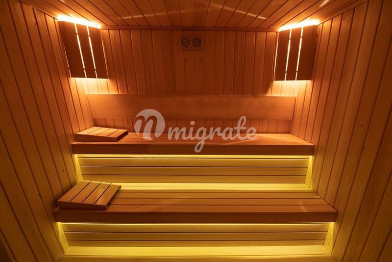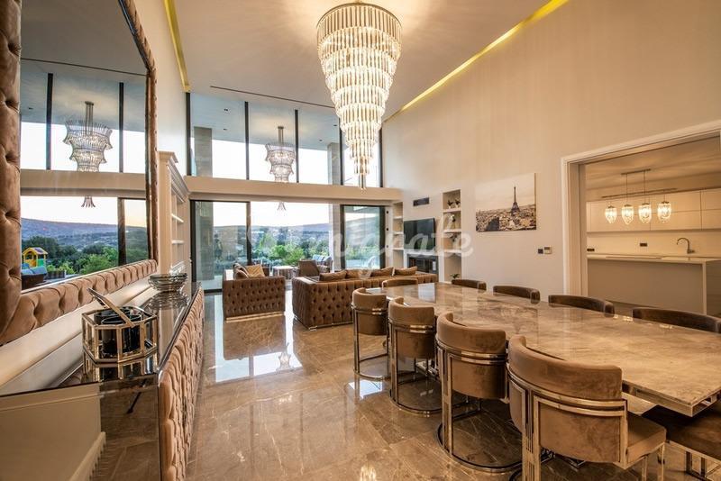 Вилла включает 7 спален, 2 гостиные, 9 ванных комнат, 4 балкона, американскую кухню, спортзал, сауну.