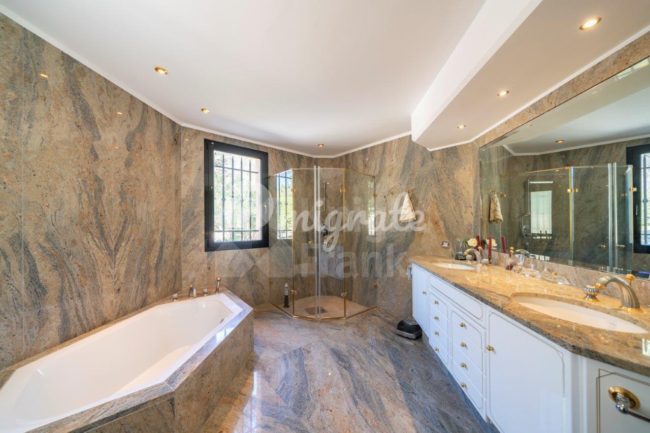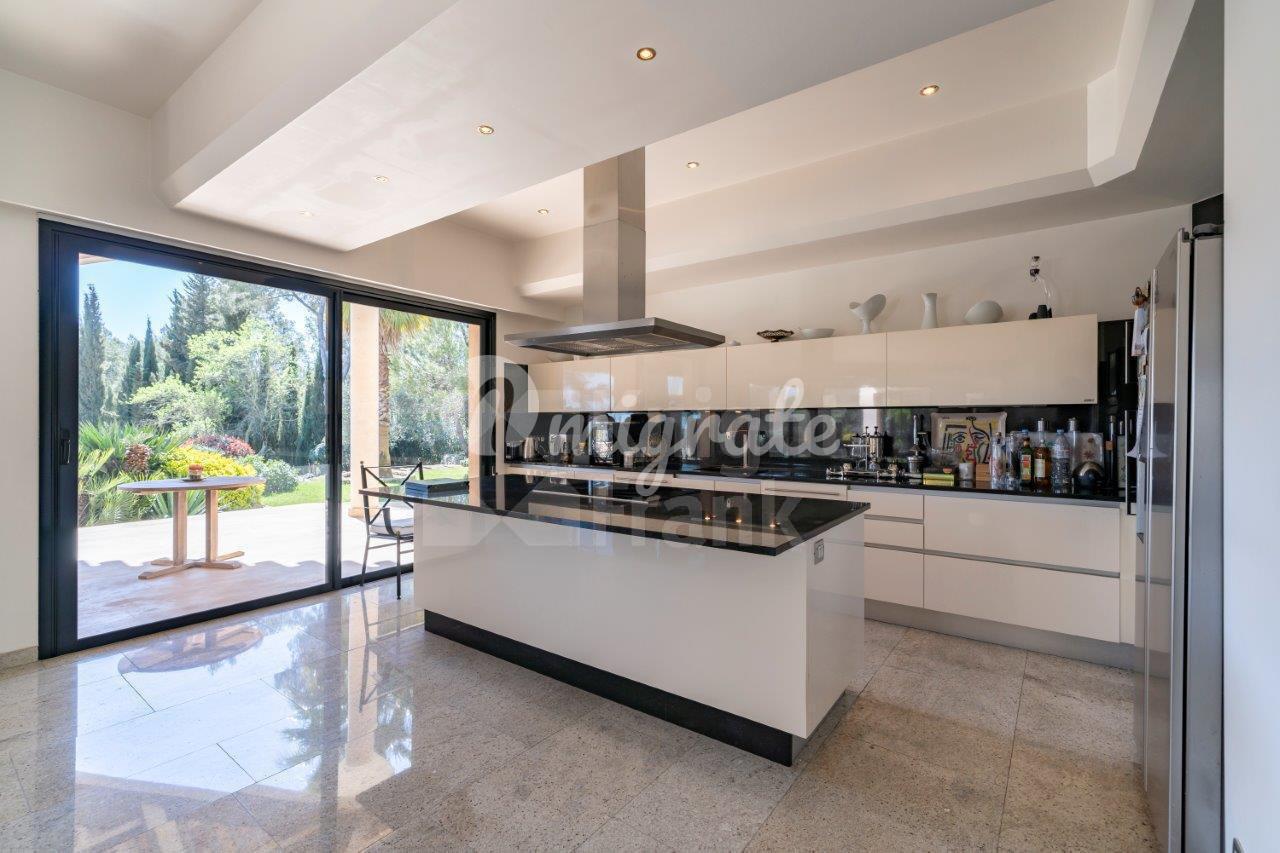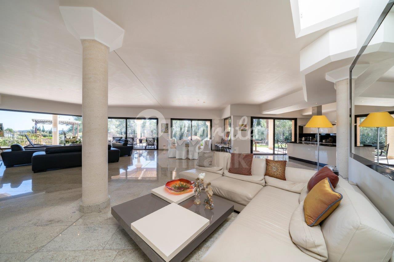 Вилла включает 6 спален с ванными комнатами, 2 кабинета, просторную гостиную с террасой площадью 400 кв. м и кухню открытого плана.