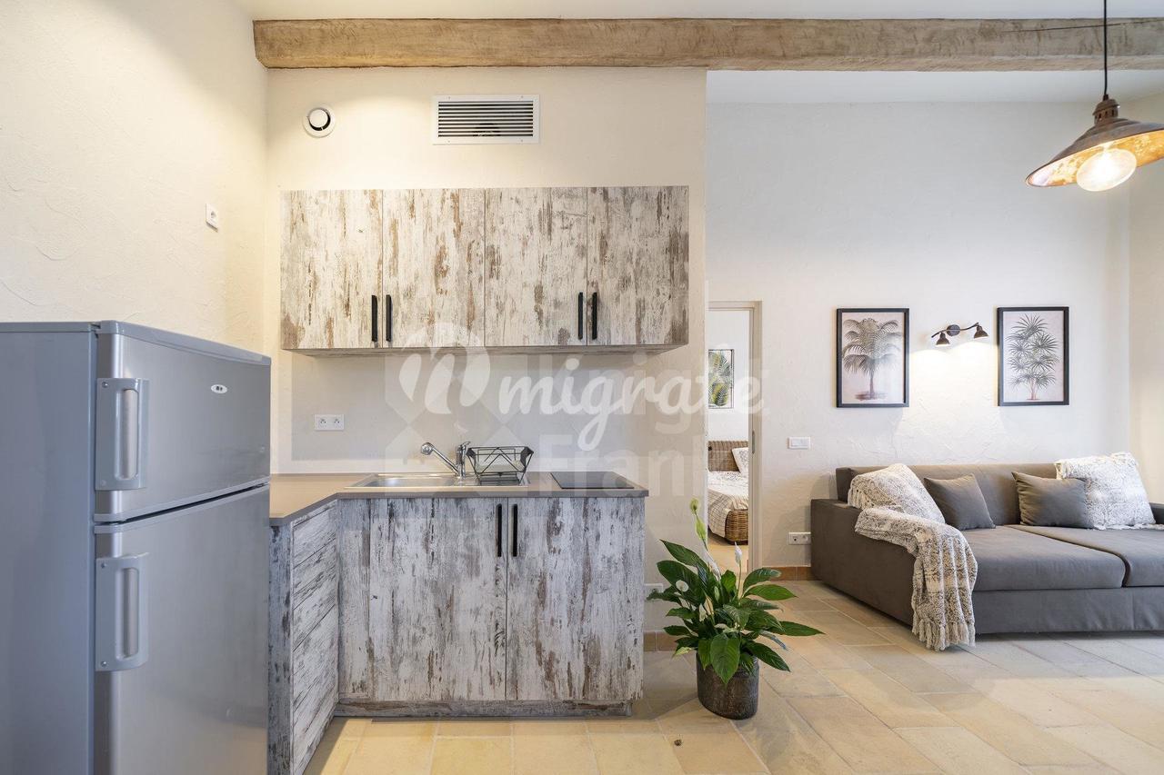 Апартаменты для персонала включают гостиную, кухню открытого плана и спальню с ванной комнатой.
