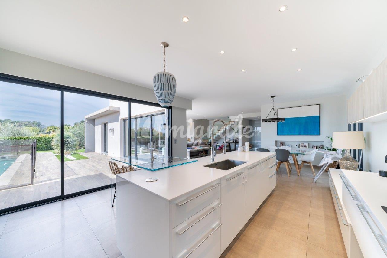 Новая современная вилла расположена в тихом жилом районе в Вальбонн, в пешей доступности до исторического центра города. Вилла состоит из прихожей, светлой гостиной, столовой, полностью оснащенной кухни, прачечной, 4 спален и 3 ванных комнат. На участке расположен бассейн, домик у бассейна, терраса с летней кухней и зоной барбекю, гараж.
