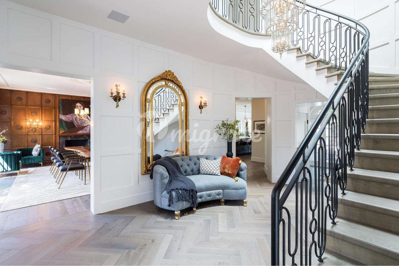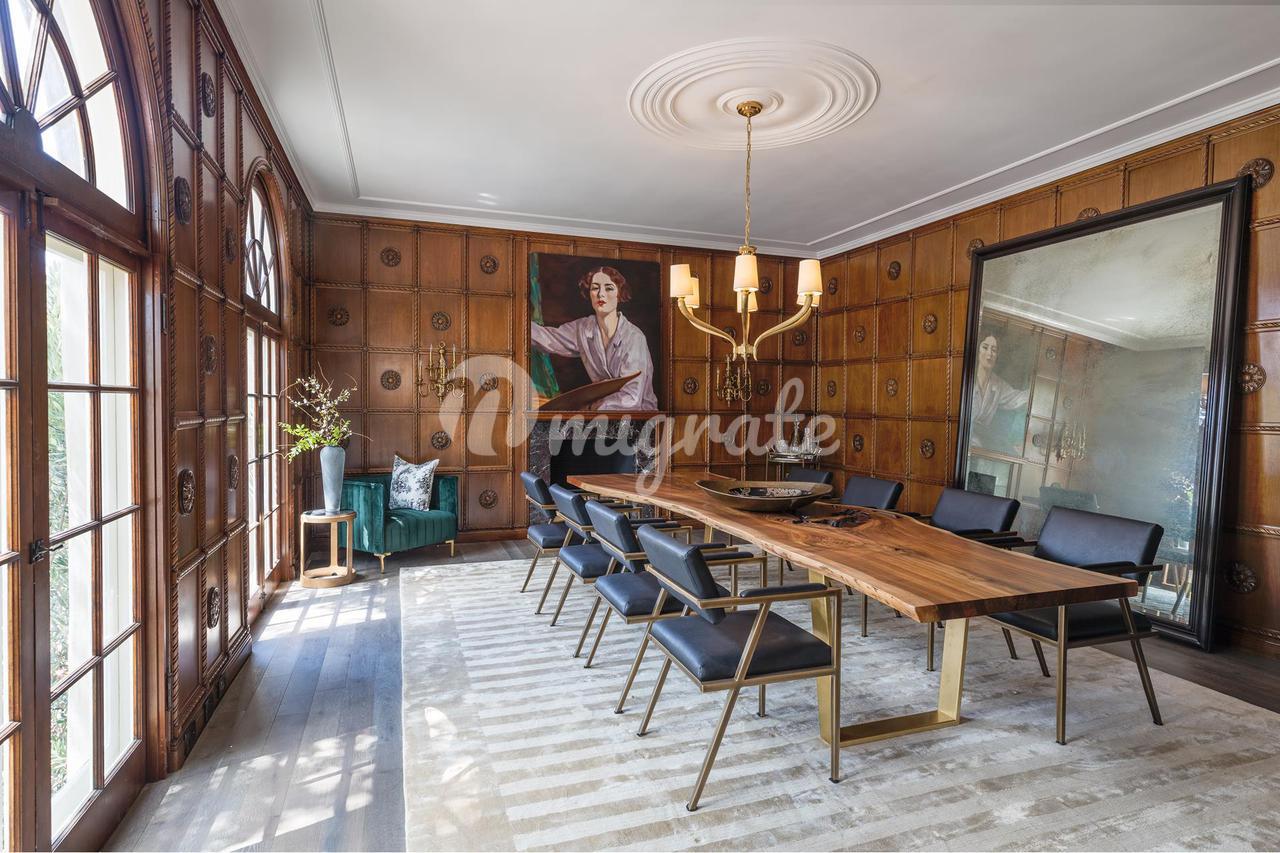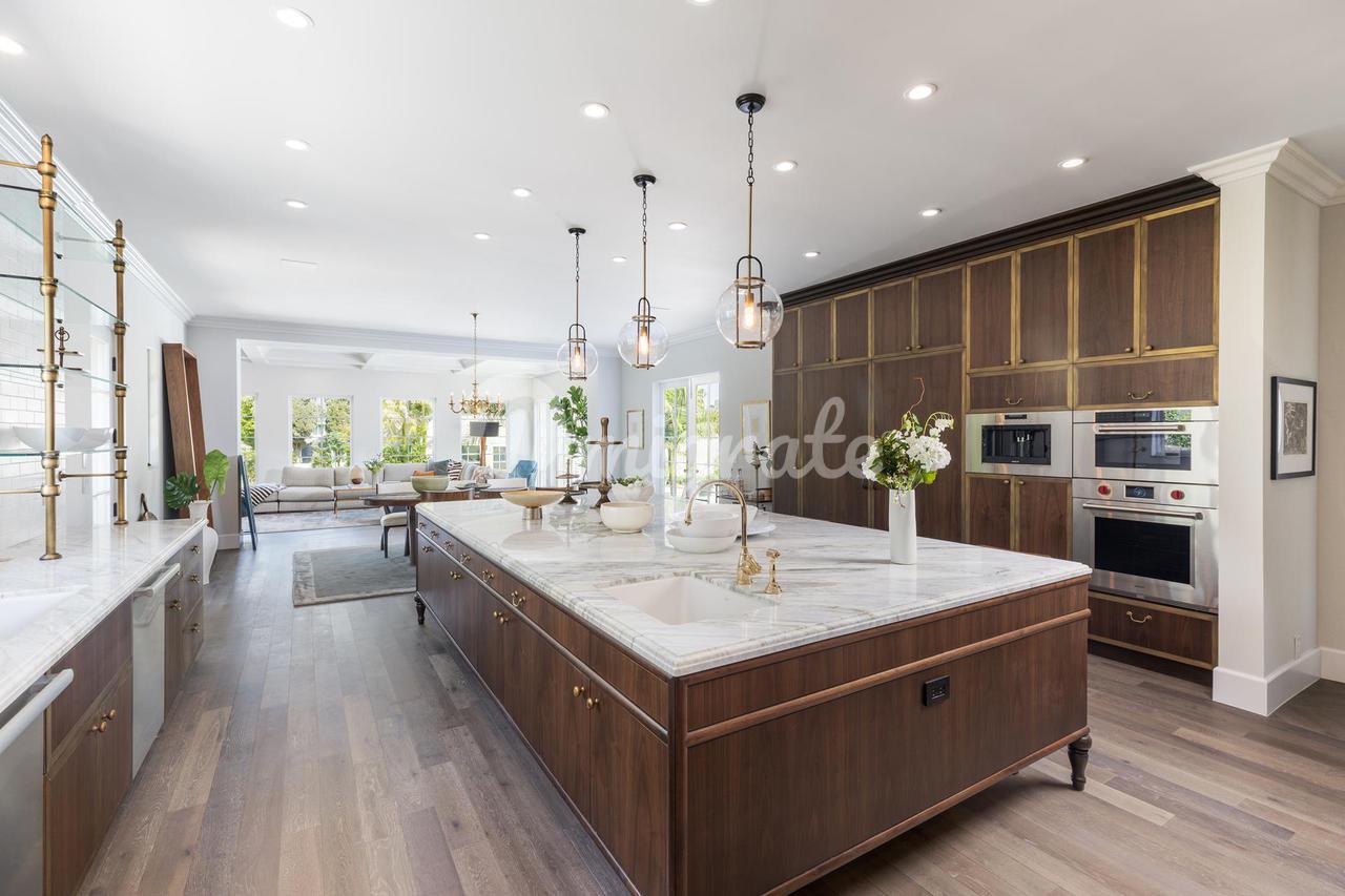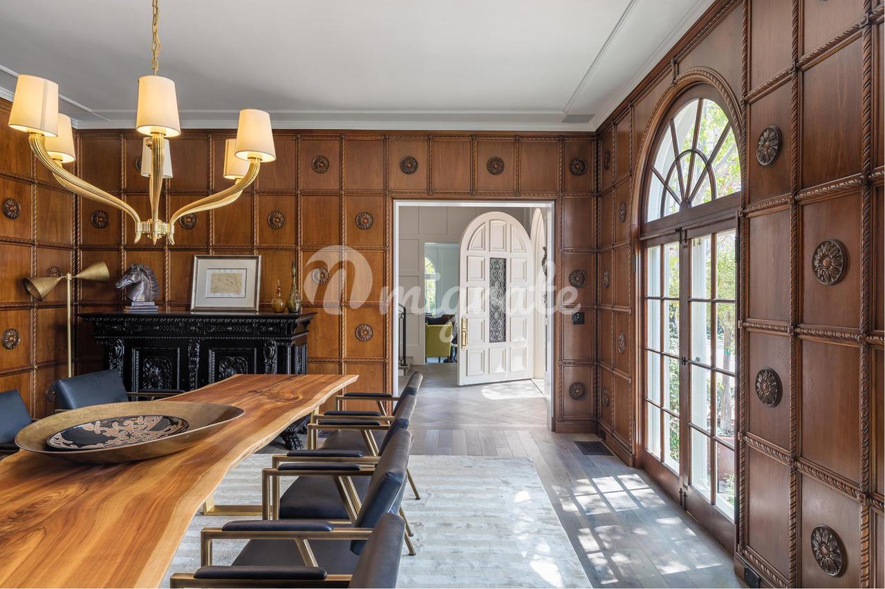 Стены столовой отделаны из впечатляющего красного дерева, утонченные лепные украшения украшают потолок и стены гостиной. Огромная гостиная, объединенная с кухней, представляет главную зону этого роскошного поместья. Павильон бассейна, оформленный в европейском стиле, ведет ко второму уровню гостевого дома.