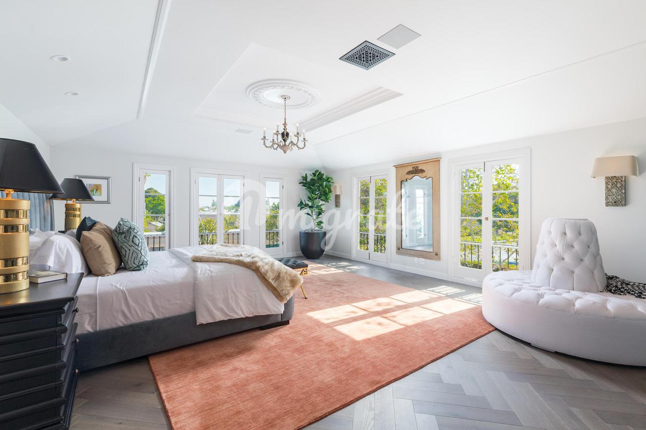 Основной дом включает 6 спален, 8 ванных комнат, библиотеку/кабинет, кинотеатр, тренажерный зал, лаунж с открытым камином и террасой. На территории находится огромная парковка для автомобилей жильцов и гостей.