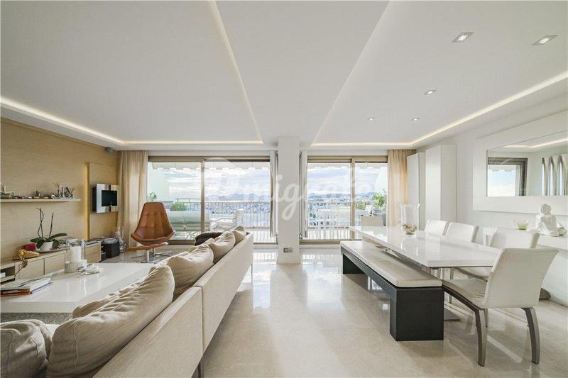 Апартаменты с видом на море расположены в охраняемом комплексе в Каннах, в районе Palm Beach. Апартаменты включают просторную гостиную, 2 спальни, 2 ванные и террасу с видом на море площадью 58 кв. м. Апартаменты включают гараж.