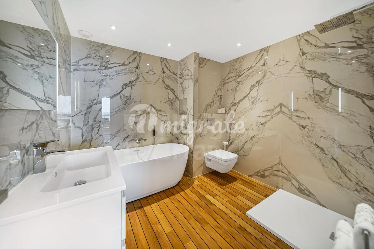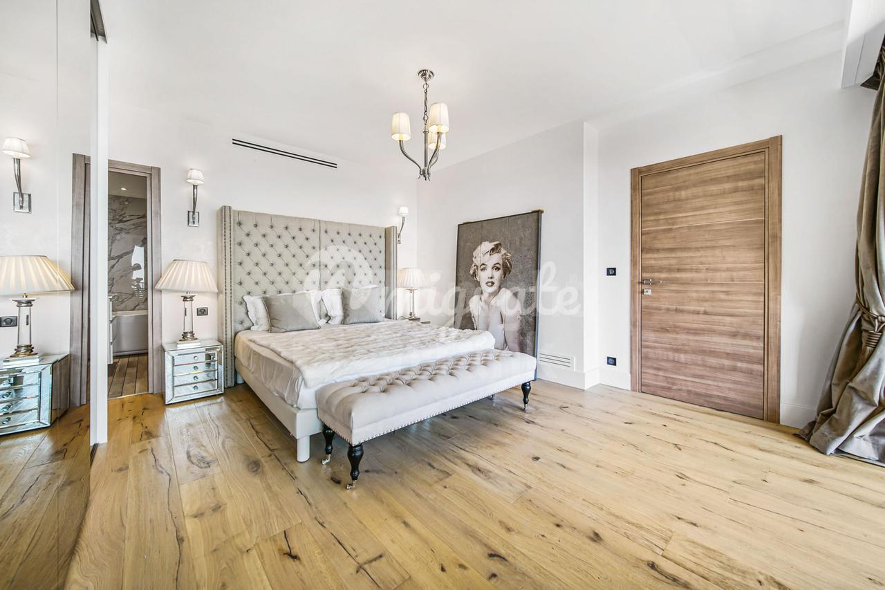 Апартаменты расположены в одной из самых престижных резиденций с круглосуточной охраной и обслуживанием в районе Калифорни в Каннах. В резиденции находится большой открытый бассейн с видом на море. Апартаменты с захватывающим панорамным видом на море и Леринские острова включают 3 спальни с ванными комнатами, полностью оснащенную кухню открытого плана, а также гараж, кладовую и парковочное место.