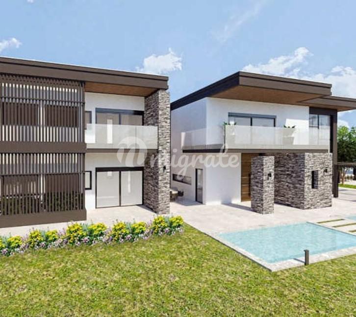 Обе виллы будут построены на большом участке не далеко друг от друга. Жильцам будут полностью обеспечены чувство уединенности и независимости. Каждая вилла, вместе с незастроенной частью участка, будет занимать площадь примерно 1.751 кв.м. Зоны отдыха, барбекю дадут прекрасную возможность для развлечений на свежем воздухе. А использование бассейна, непосредственно прилегающего к главному зданию, будет дарить прохладу в жаркие дни греческого лета. Панорамные окна обеспечат беспрепятственный визуальный контакт с зеленой зоной из гостиной, а также из спален.