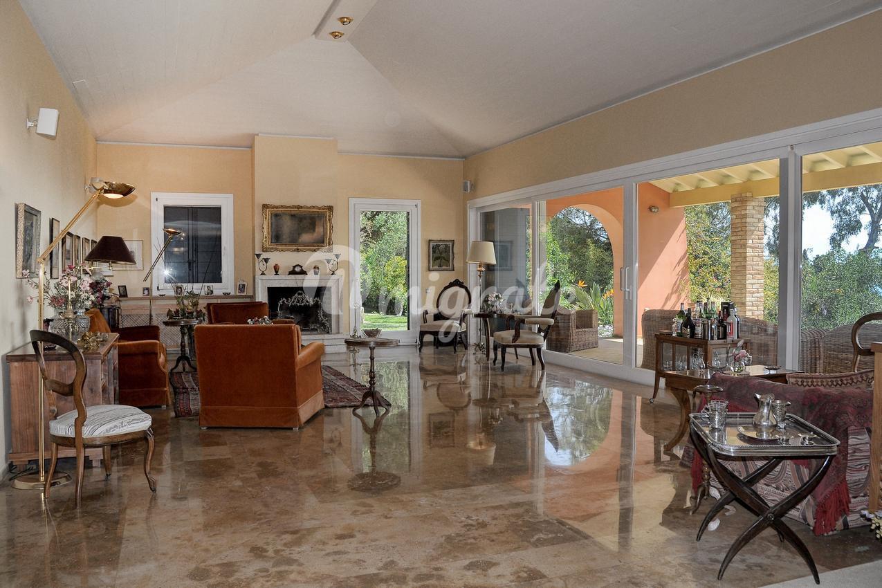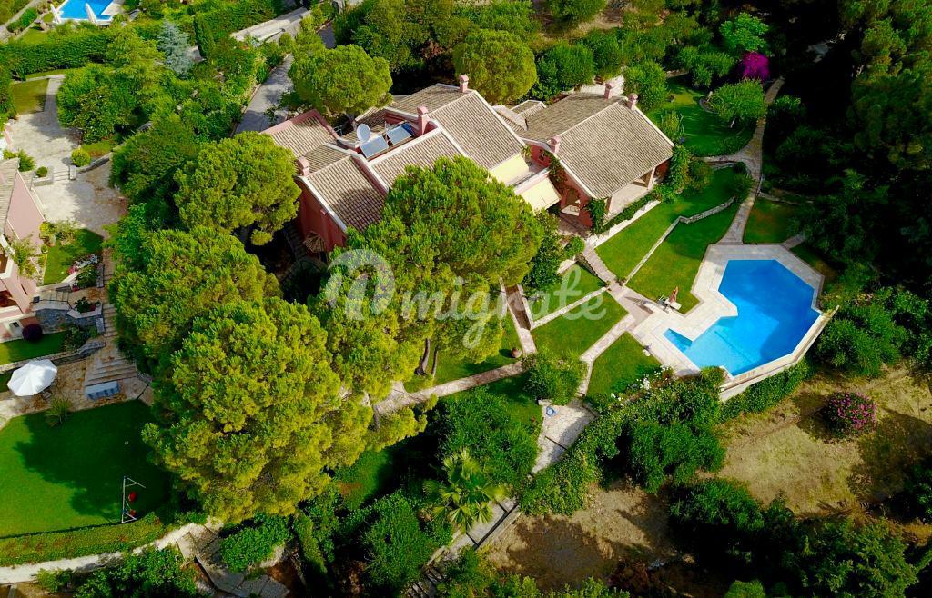 Роскошная вилла с видом на море расположена на курорте Касьопи на побережье острова Корфу в закрытом поселке, всего в нескольких минутах езды от города Корфу и в 10 км от аэропорта.