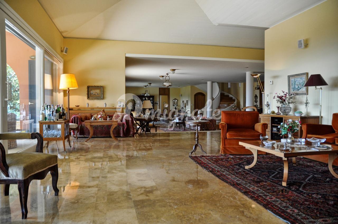 Вилла расположена на 3 уровнях и включает 8 спален, кабинет с библиотекой, три кухни и несколько террас.