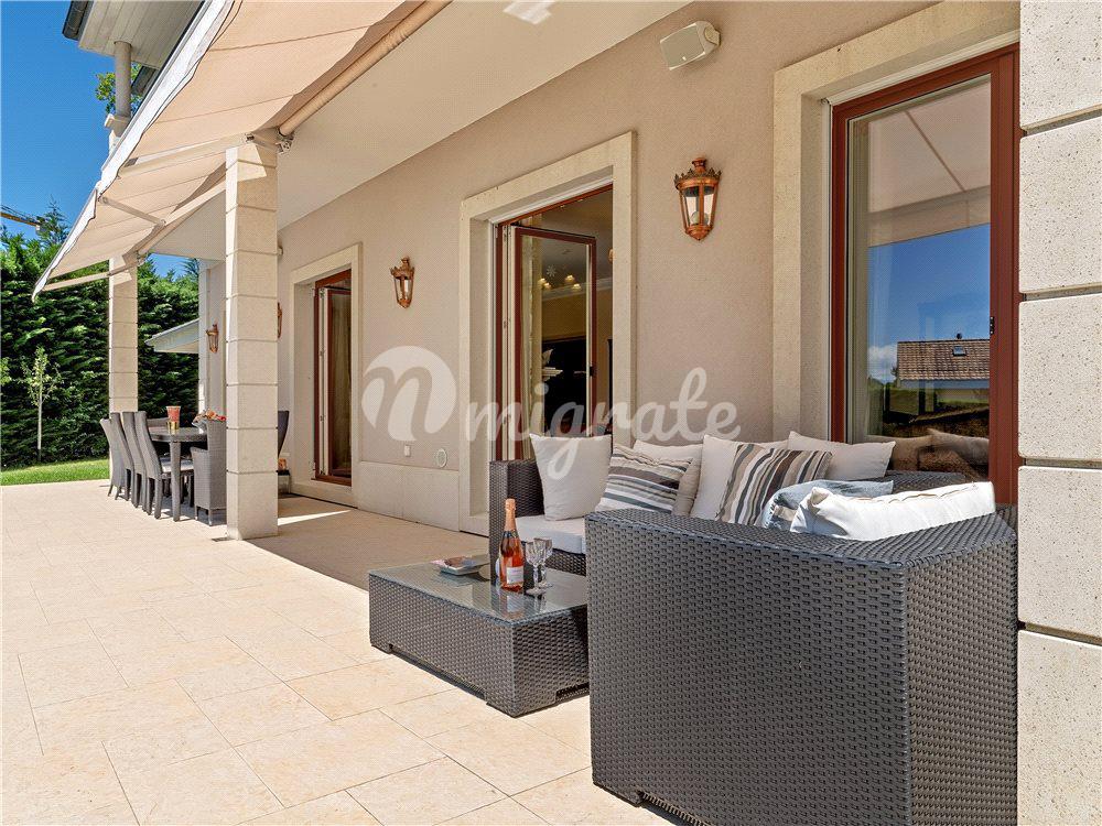 Прекрасная вилла расположена в тихом привилегированном квартале Конш в Женеве, в нескольких минутах от центра города. Вилла была построена в 2011 году на участке площадью 1480 кв. м. Вилла площадью 540 кв. м состоит из трех этажей. На первом этаже находится прихожая, гостиная с камином, столовая открытого плана, кухня, полностью оснащенная немецкой техникой Poggenpohl, и кабинет. Второй этаж включает две спальни, две ванные комнаты и главную спальню с ванной комнатой, гардеробной и балконом, с которого открывается потрясающий вид на райскую гору Салев и сад с бассейном. На цокольном этаже расположена гостевая спальня с ванной комнатой, домашний кинотеатр, игровая и прачечная. В саду находится бассейн и домик у бассейна, который включает гостевую спальню, душевую и кухню.