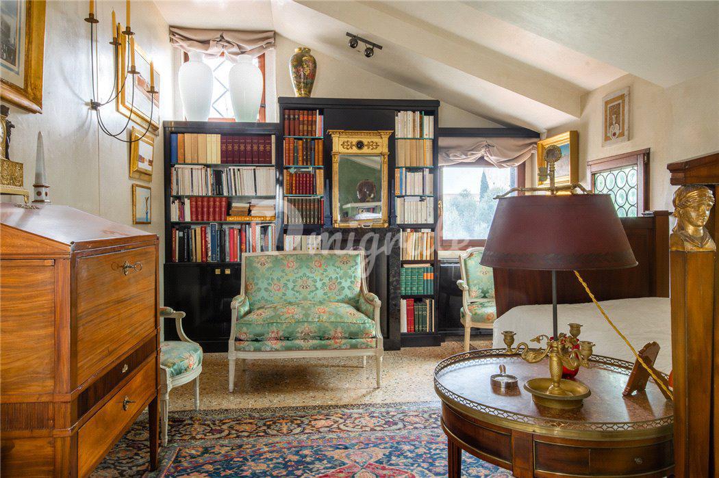 Роскошный исторический особняк 16-го века с панорамными видами на Венецию расположен в центре города. В особняке находится просторная гостиная с неоклассическими колоннами, библиотека, кабинет, столовая и шесть спален. Дом включает частный сад, террасу. Также есть возможность установки лифта.