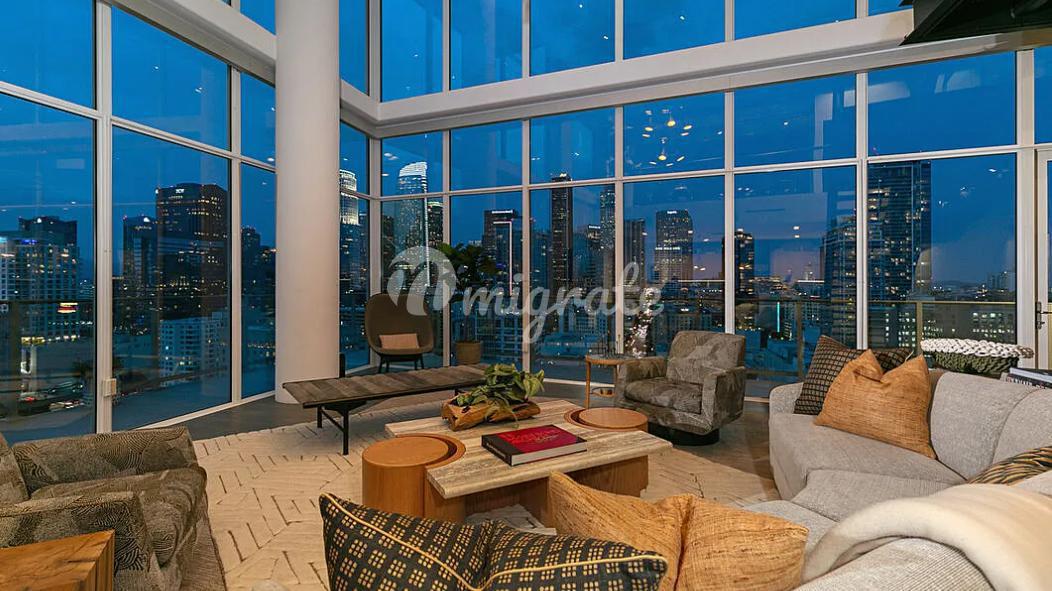 Этот роскошный пентхаус, расположенный в модном районе Южного парка в DTLA, окружен стеклянными стенами от пола до потолка, из которых открывается потрясающий вид на город. Построенный на заказ компанией Brown Design Group и отмеченный в журнале Luxe Interior Design, этот совершенно потрясающий пентхаус Ten50 может похвастаться почти 30-футовыми потолками, огромным количеством частного открытого пространства. Вас заворожит открытая и просторная планировка в стиле лофт, которая позволяет гостиной, лаунжу и столовой плавно перетекать друг в друга. Воспользуйтесь своим внутренним поваром на кухне для гурманов, которая может похвастаться высококлассной техникой Wolf Sub-Zero, островом в центре и гладкими шкафами из темного дерева.