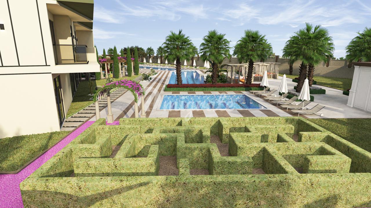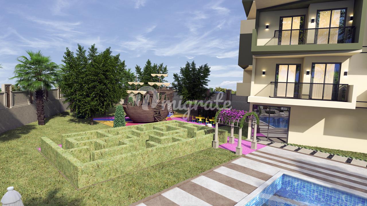 Жилой комплекс расположен в Аланье, Демирташ в 1200 метрах от моря. Инфраструктура комплекса: открытый бассейн (400 м²), закрытый бассейн с подогревом, джакузи, детский бассейн, джакузи с подогревом, сауна, паровая, соляная комната, зона отдыха, тренажёрный зал, детская игровая комната, лобби. Особенности комплекса: открытая парковка, огороженная территория, велопарковка, управляющий, Wi-Fi, спутниковое TV, подсветка территории и фасадов, электрогенератор. Комплектация апартаментов: входная стальная дверь, видеодомофон, встроенная мебель на кухне и в ванных комнатах, полный пакет бытовой техники (холодильник, посудомоечная машина, варочная поверхность, духовка, вытяжка, стиральная машина), кондиционер в каждой комнате, подогрев полов в ванной комнате, душевые кабины, сантехника, электрический водонагреватель.