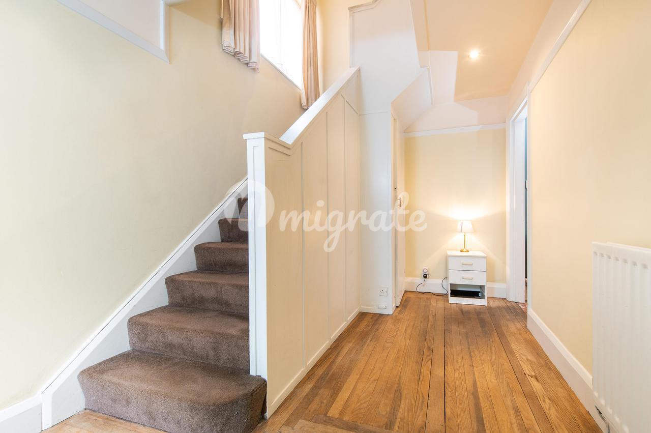 Наверху, на лестничной площадке, есть чердачный люк с опускающейся лестницей, дающей доступ к просторному чердаку, который может стать дополнительным помещением при наличии необходимого согласия. Главная спальня с собственной душевой комнатой выходит окнами на фасад дома, откуда открывается вид на парк на противоположной стороне дороги. Есть еще три спальни, душевая комната и отдельный туалет.