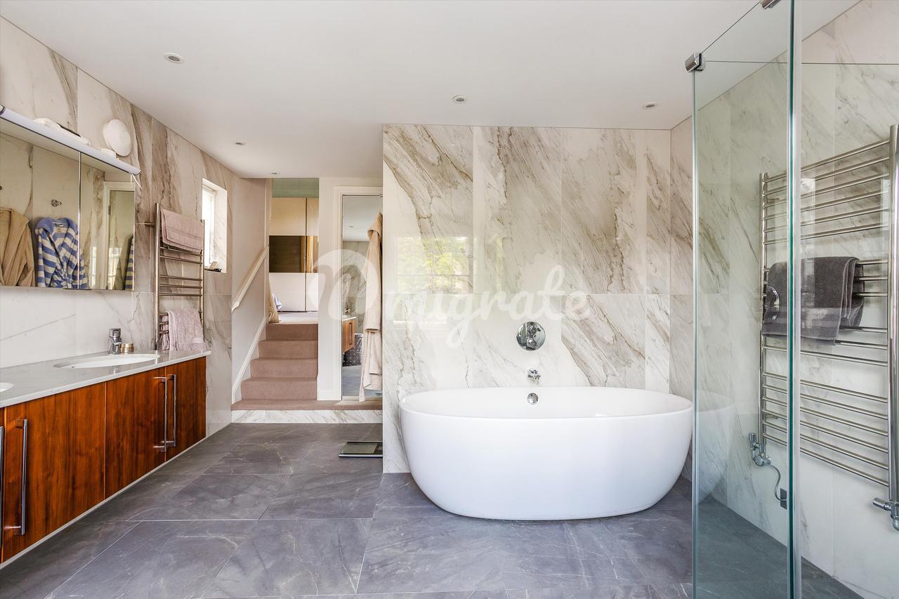 На первом этаже находится впечатляющая парадная гостиная с тремя окнами от пола до потолка с рабочими ставнями и мраморным камином. За главной спальней есть лестница, ведущая в роскошную ванную комнату с отдельно стоящей ванной, отдельным душем и двумя раковинами.