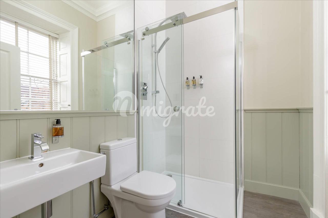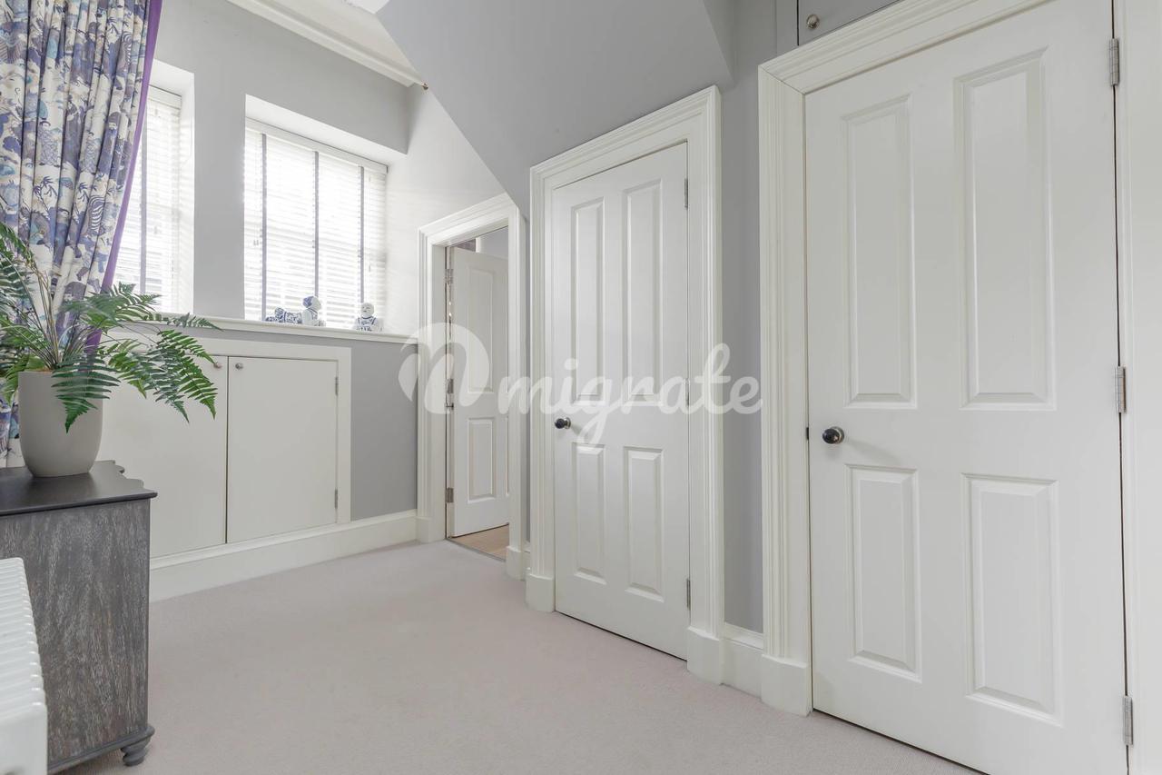 В передней части дома находятся спальни; главная извлекает выгоду из двух больших окон, которые купают комнату в естественном виде и имеют прямой вид на сады Square, эта спальня также включает в себя ванную комнату с душем. Вторая спальня выгоды от встроенного хранения. Рядом находится современная семейная ванная комната; белый люкс с ванной и душем.