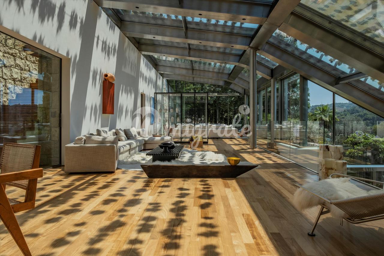 Вилла с видом на побережье Французской Ривьеры расположена на участке площадью около 4000 кв.м. На виллу можно подняться на эксклюзивном лифте, который ведет в просторную гостиную с полностью оборудованной кухней в американском стиле, откуда открывается вид на залив Вильфранш-сюр-Мер. В доме в общей сложности 5 спален. Интерьеры виллы легко переходят на множество террас и зон для развлечений на открытом воздухе, включая обеденную зону, расположенную рядом с гостиной. Собственность также включает в себя пышную внутреннюю и наружную растительность, чтобы создать яркую и заманчивую среду для жизни и развлечений.