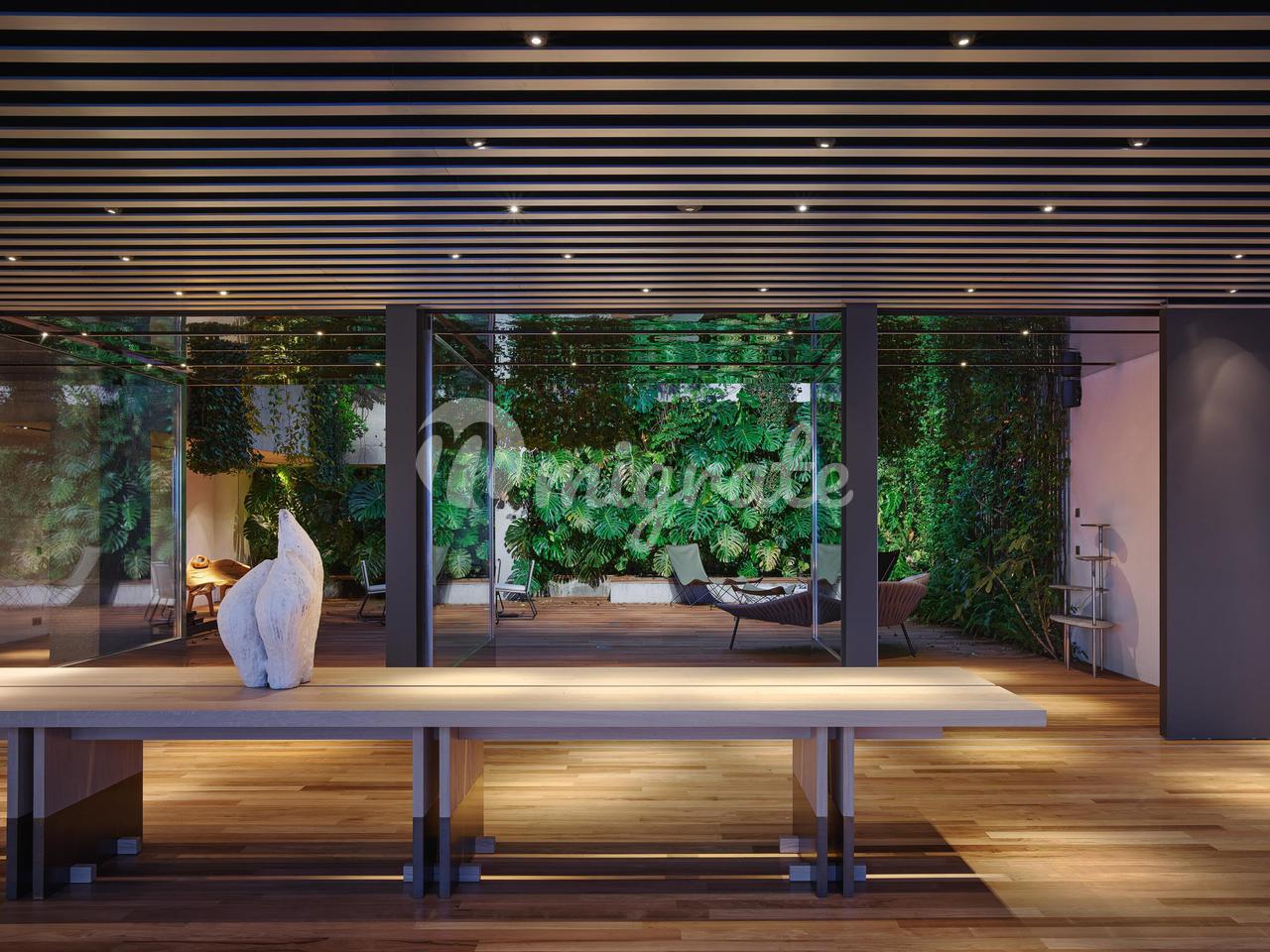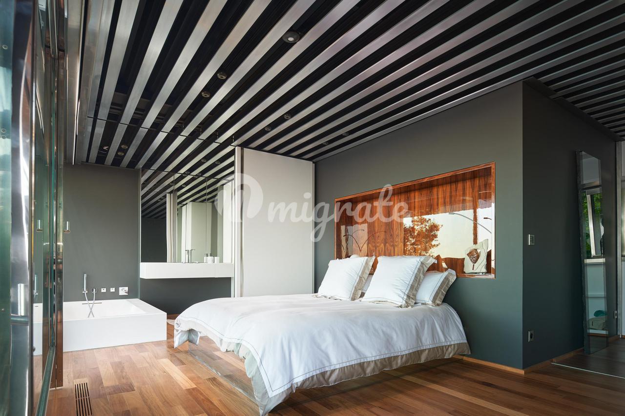 Вилла отличается высококачественной отделкой, включая розовое дерево, стены из натурального камня, стеклянную конструкцию из нержавеющей стали и многое другое.