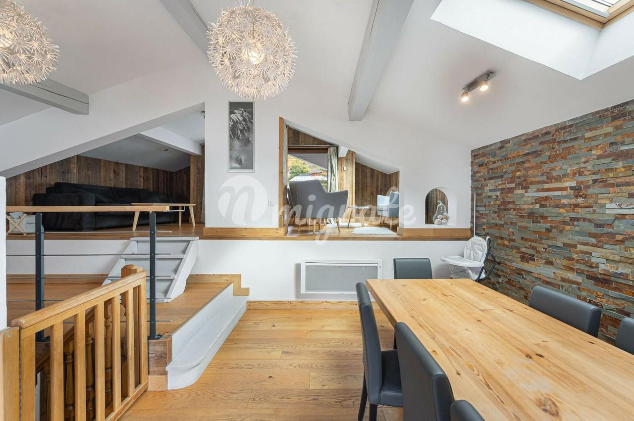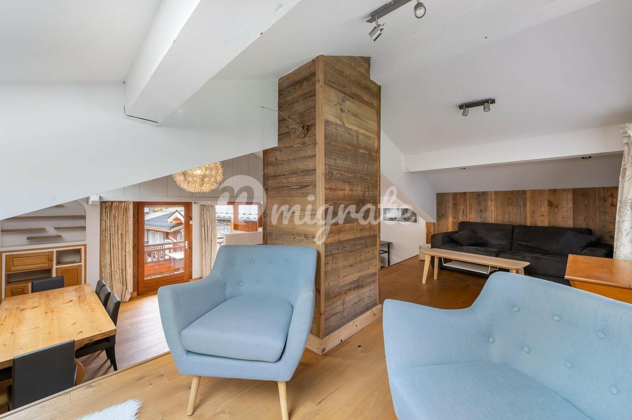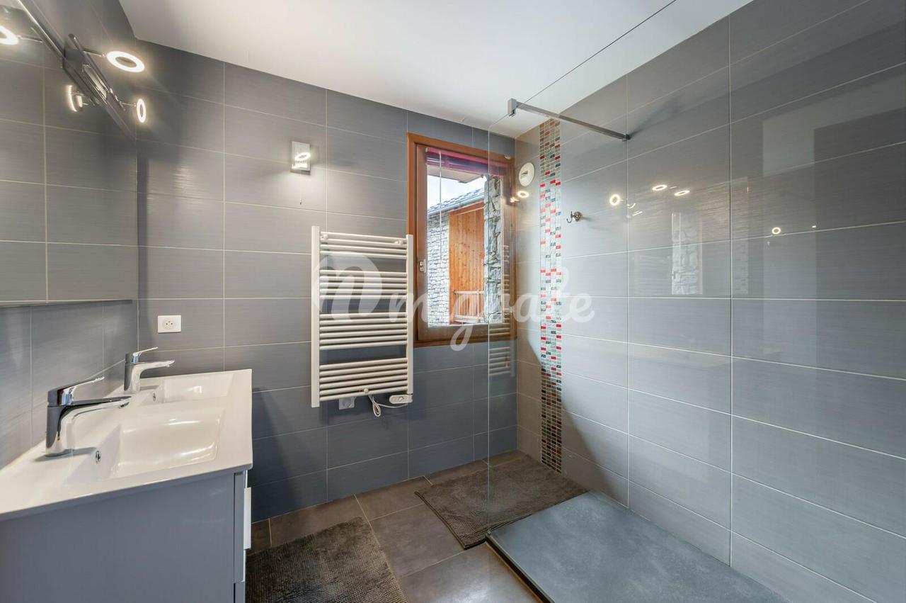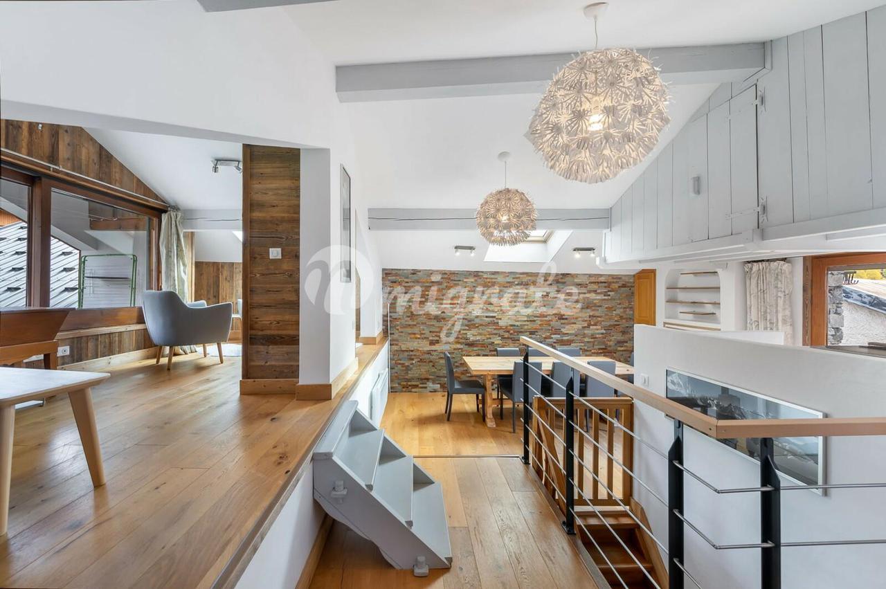 Вторая часть предлагает жилую площадь примерно 76 кв.м. Она состоит из кухни, выходящей в гостиную, построенную на 3 полууровневых уровнях, двух спален с двуспальными кроватями и ванной комнаты. Проект реконструкции потенциально мог бы связать квартиру с шале, создав таким образом большое семейное шале. В собственности есть подвал и кладовая.
