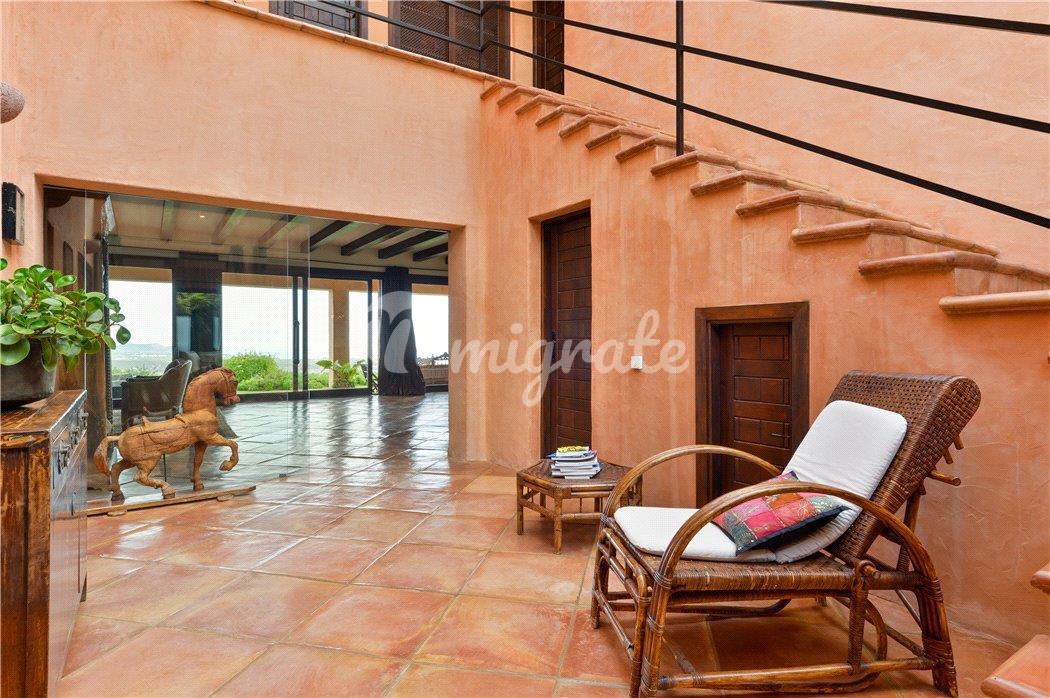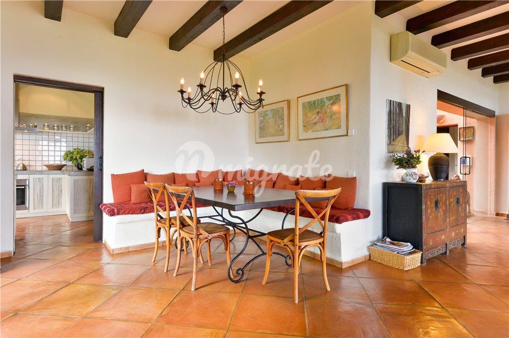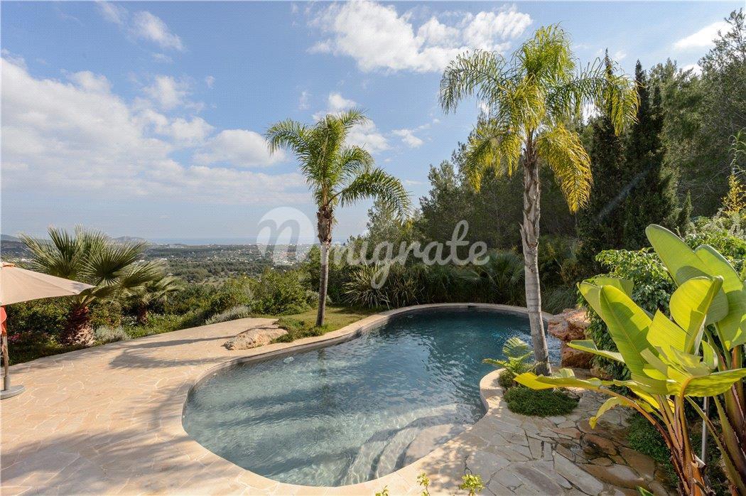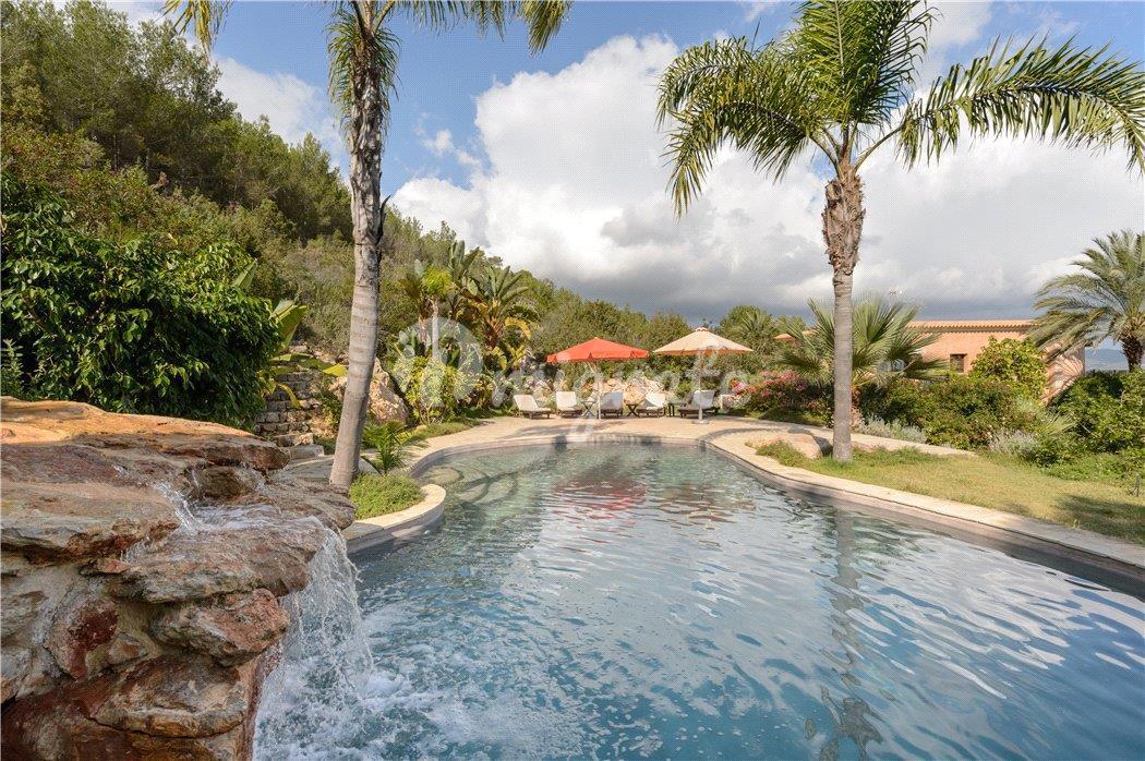 Этот недавно отремонтированный просторный дом может похвастаться великолепным видом на море, побережье и соседние острова к востоку от Санта-Эулалии. На вилле пять полноценных люксов, полностью оборудованная кухня, большая гостиная, выходящая на великолепную крытую террасу, и отдельный домик для гостей. Недвижимость расположена на большом холме, покрытом сосновым лесом, и имеет частную подъездную дорогу, ведущую к дому. В собственности есть прекрасный зеленый газон, тропический ландшафтный сад с множеством пальм, оливковых деревьев и цветущих растений с различными открытыми террасами и бассейном в стиле натурального камня. Эта вилла мечты предлагает непревзойденное уединение с захватывающим видом на море. Обратите внимание, что расстояния указаны приблизительно, а расположение на карте указано только для ближайшей деревни/города, а не для точного местонахождения объекта.