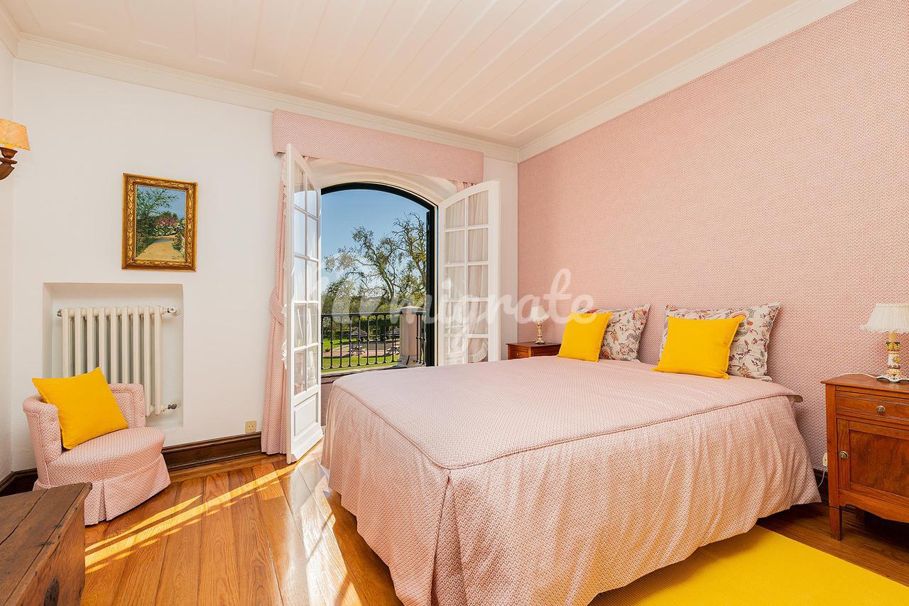 Главный дом площадью более 1400 кв. м был спроектирован архитектором Антонио Хосе Брито и Кунья и завершен известным архитектором Марией Хосе Салависа. Традиционные сводчатые кирпичные потолки обеспечивают прохладу летом и тепло зимой. Пол сделан из мрамора, извлеченного из монастыря 18 века. Пол с подогревом и массивные дубовые двери делают этот дом исключительно комфортным и роскошным. Главный дом имеет два этажа, расположенных следующим образом: Впечатляющая прихожая ведет в большую гостиную с двумя каминами и прямым выходом в сад и к бассейну. В правом крыле площадь с двумя апартаментами; в левом крыле кухня, кладовая и подсобные помещения, квартира для домработницы и коридор в просторную столовую, в которой также есть камин.