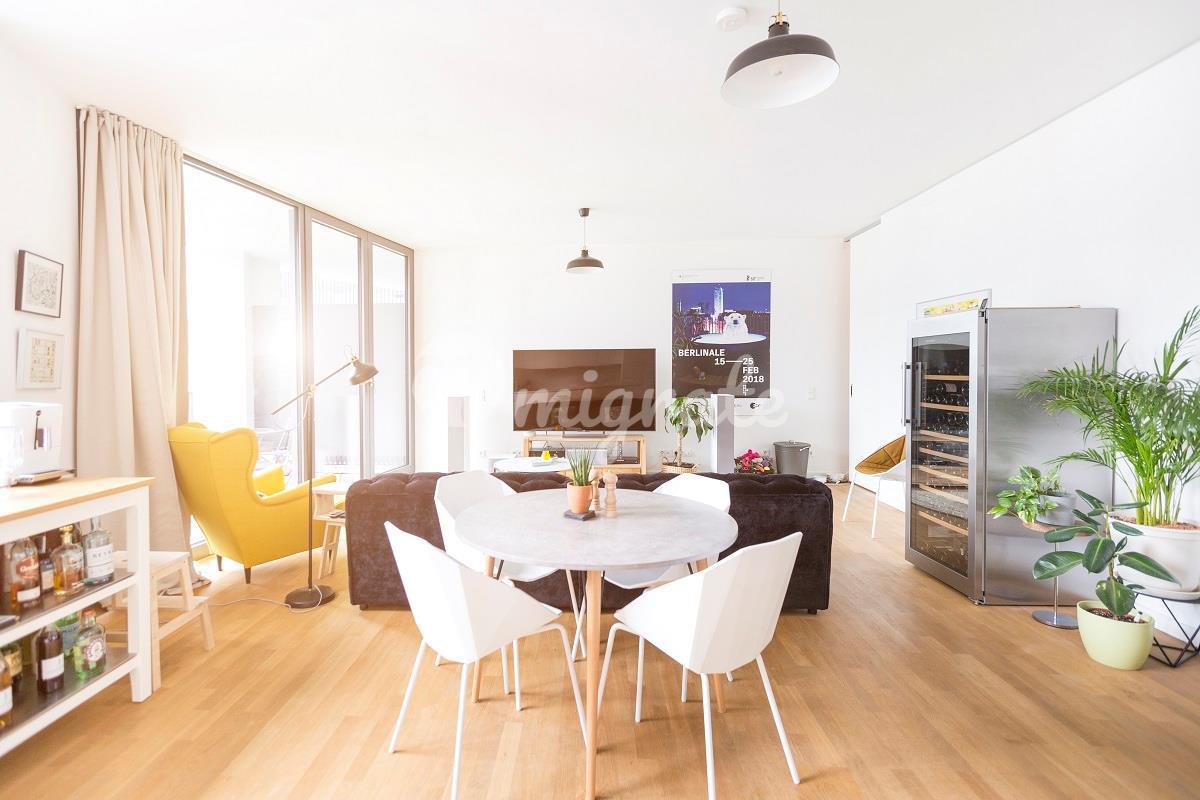 Жемчужина современной жизни в центральном берлинском районе Митте: апартаменты SAPPHIRE RESIDENCE площадью примерно 103 кв. м ждут вас в эффектном жилом доме с одноименным названием SAPPHIRE, спроектированном знаменитым архитектором Даниэлем Либескиндом. Даже издалека множество различных оттенков синего и серебристого блестящего футуристического фасада ошеломят вас, поскольку они сочетаются с исключительными линиями здания и его необычным языком форм. И это в центре города, рядом с сердцем города, где новаторская архитектура прекрасно дополняет городскую жизнь Берлина. Испытайте знаменательную жизнь в SAPPHIRE RESIDENCE. Светлая и просторная гостиная, кухня и столовая являются центральным элементом этой 3-комнатной квартиры площадью около 103 кв.м, которая будет сдана до конца этого года. Панорамные двери патио обеспечивают выход на балкон площадью около 6 кв.м. Пол с подогревом с покомнатным управлением еще больше улучшает домашние удобства, равно как и паркет из натурального дерева и лифт, который доставит вас из ваше место на подземной парковке прямо до вашей квартиры на четвертом этаже.
