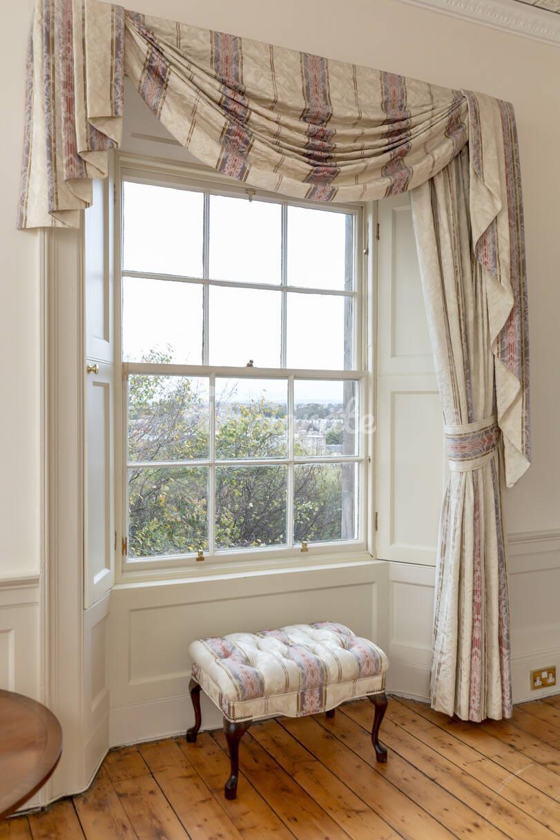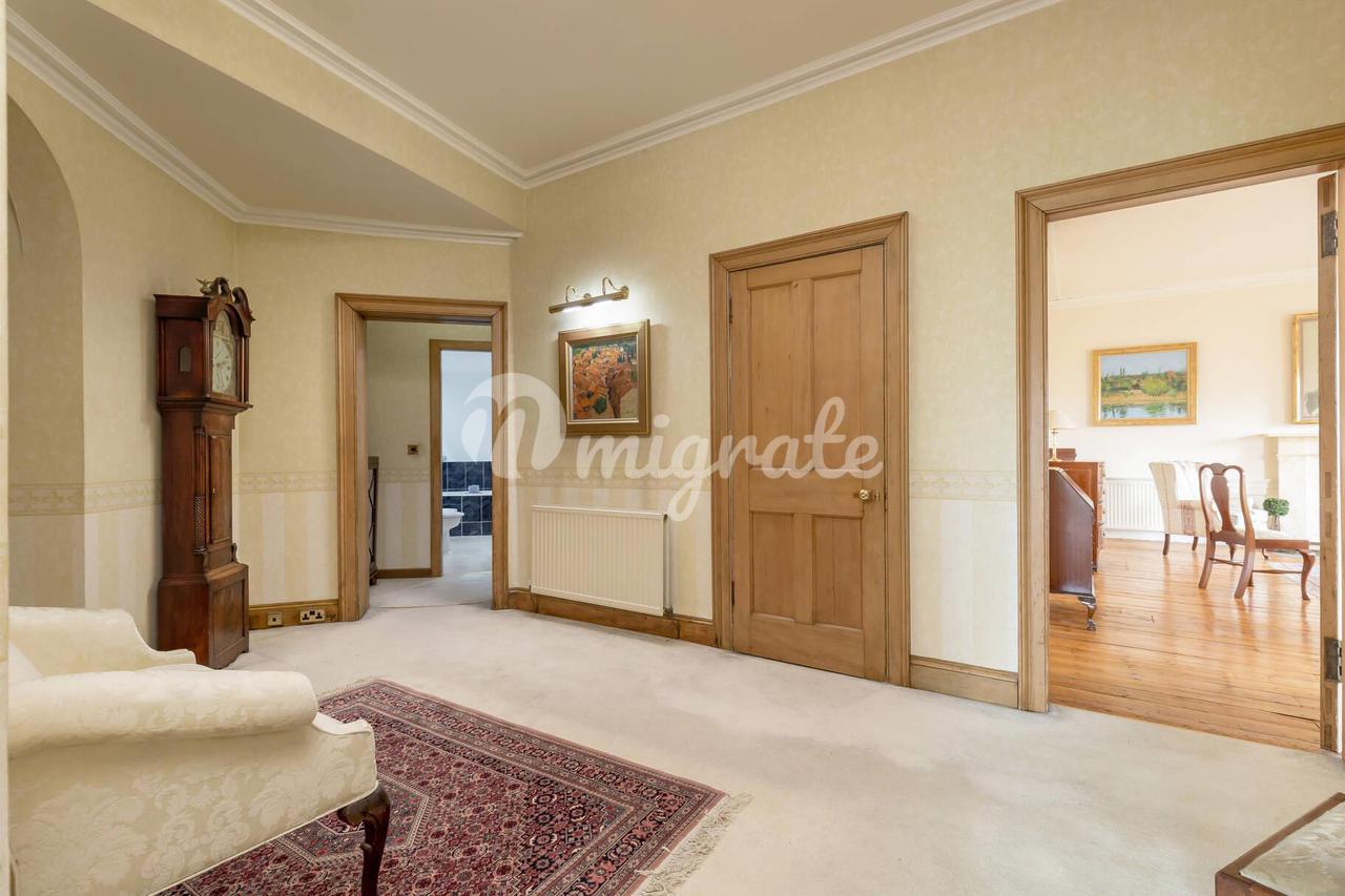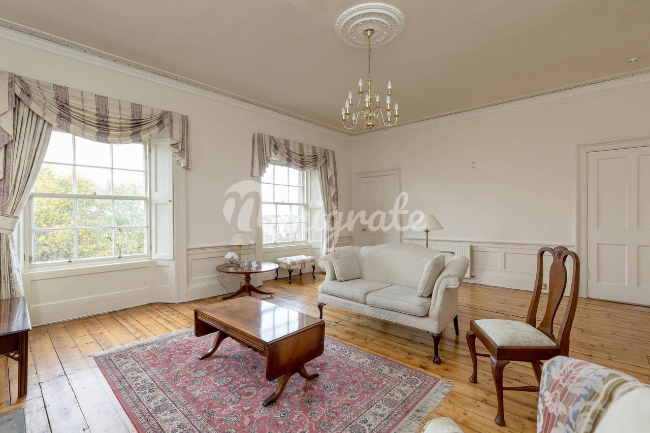 Отель предлагает хорошо сбалансированные номера с множеством сохранившихся оригинальных элементов, включая декоративные карнизы, камины и створчатые окна с работающими жалюзи. В собственность можно попасть по общей входной лестнице, которая является общей только с тремя другими квартирами. Планировка дома особенно привлекательна, с большой прихожей, ведущей в просторные, хорошо освещенные комнаты с видом на три различных аспекта. Из гостиной с элегантными традиционными половицами и большой каминной полкой открывается вид на Королевский полумесяц и холмы Файфа. Этот номер является идеальным местом для отдыха или развлечений. Рядом с этой комнатой находится кабинет или четвертая спальня. Кухня / столовая большого размера с работающими жалюзи и подоконником, а также достаточным пространством для хранения вещей.