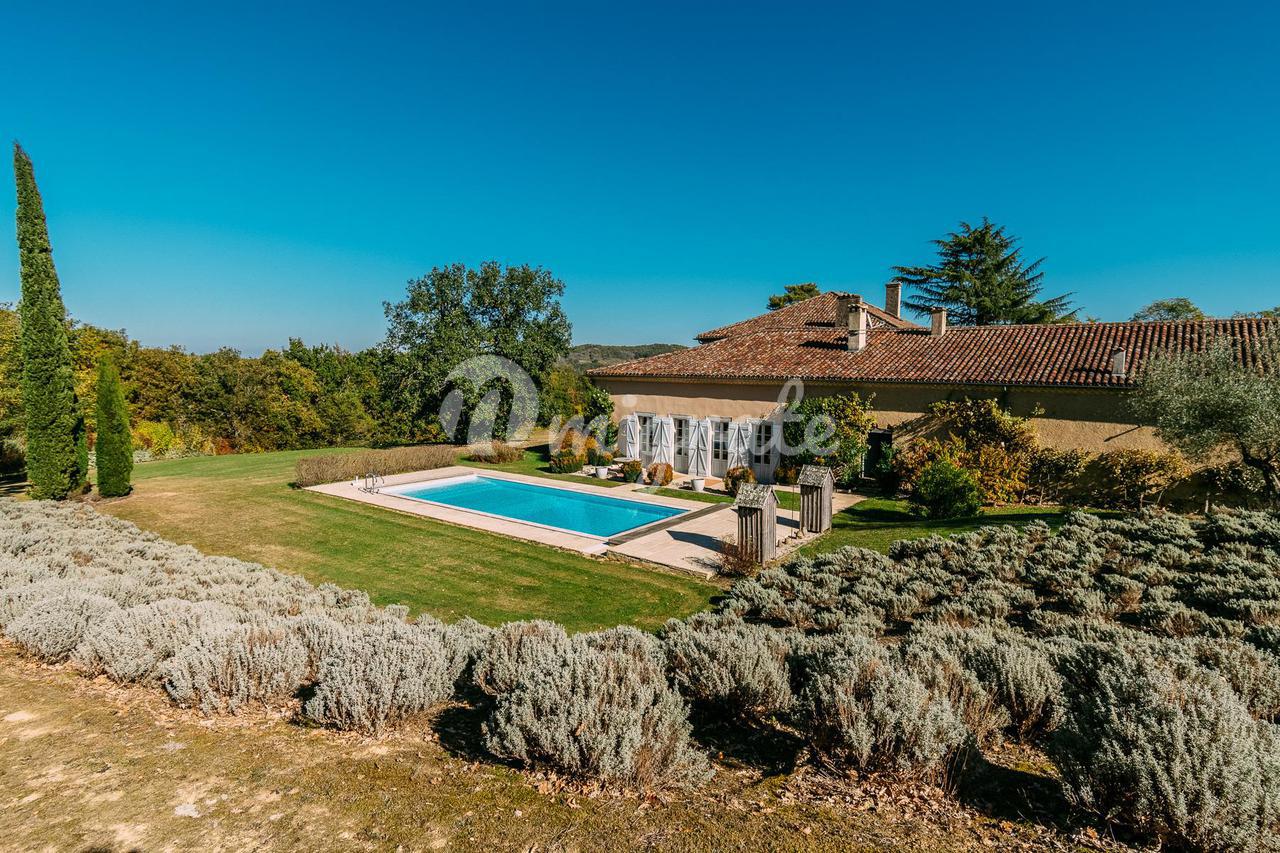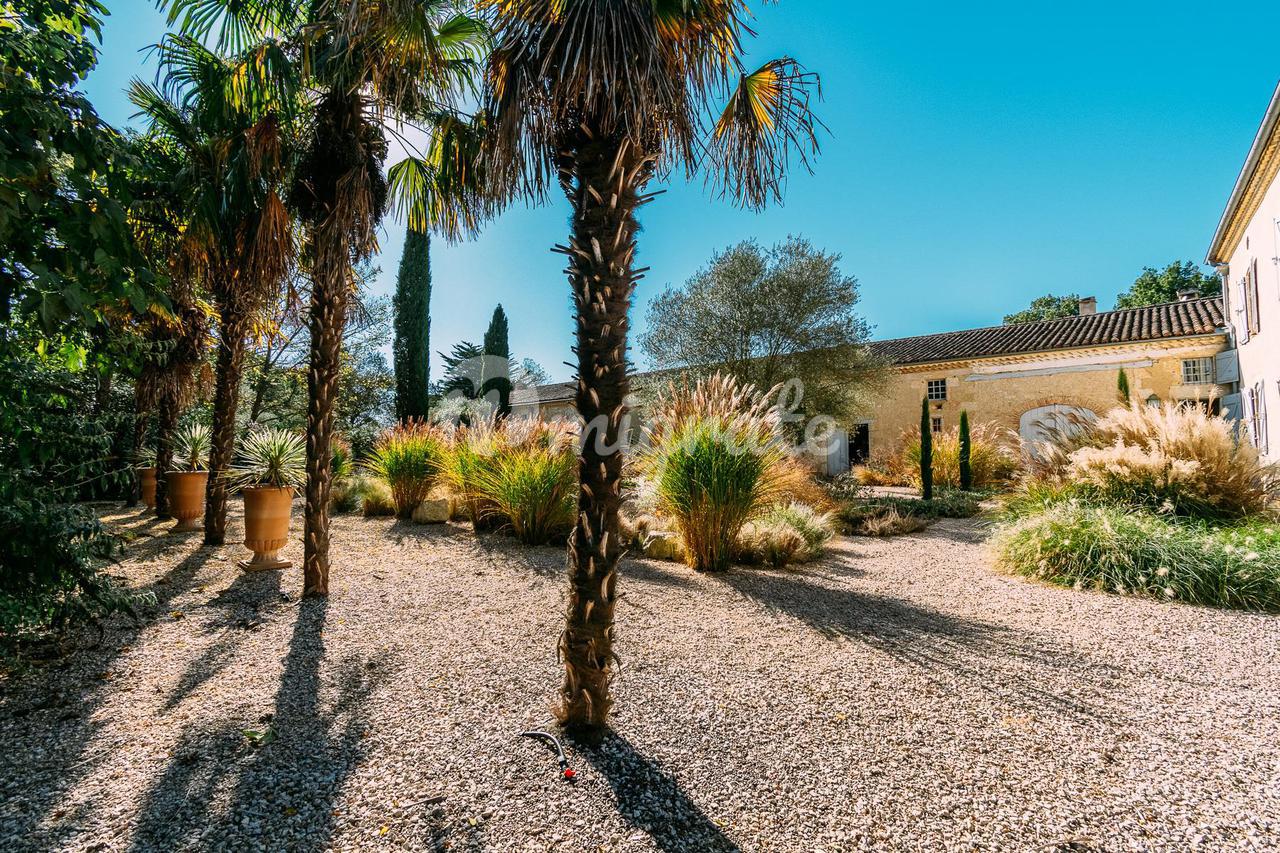 Выложенная камнем дорога длиной 450 метров поднимается на возвышенное плато, обрамленное кипарисами, ведущее к гостевой парковке. Ландшафтная территория имеет много восхитительных аспектов со взрослыми деревьями, включая кедры, дубы, акации и пальмы, а также семь вековых оливковых деревьев. Перед домом находится обнесенный стеной и воротами двор с древним оливковым деревом, окруженный экзотическими травами и засухоустойчивыми насаждениями. На востоке находится длинный пруд и крытый колодец, а дальше большая лужайка, идеально подходящая для занятий спортом или теннисного корта. Задний сад с великолепными гортензиями окружен каменными стенами и живыми изгородями, откуда открывается вид на лесистую местность. На западе, соединенном с большим салоном, находится солнечная терраса с видом на защищенную территорию с оливковыми деревьями и розами. Бассейн 13x5 м с каменным покрытием, облицовкой песочного цвета и автоматическим защитным покрытием.