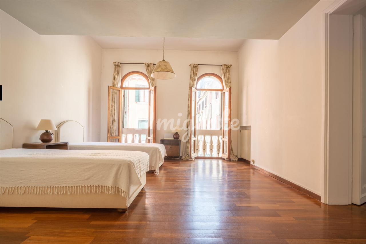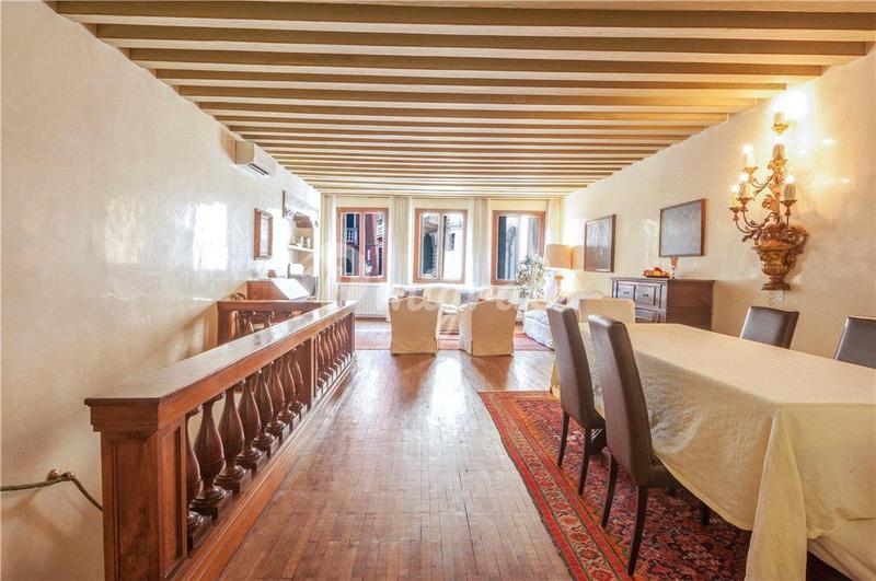 Эти элегантные апартаменты расположены в районе Заттере/Сан-Вио, недалеко от знаменитого музея Гуггенхайма. Он расположен на втором из трех этажей в элегантном здании с мраморной лестницей и имеет жилую площадь около 170 кв.м. Дом просторный и хорошо освещенный, состоит из прихожей, столовой, большой гостиной, кухни, трех спален с двуспальными кроватями и двух ванных комнат. Из окон открывается приятный вид на окружающие сады и вид на канал Джудекка.