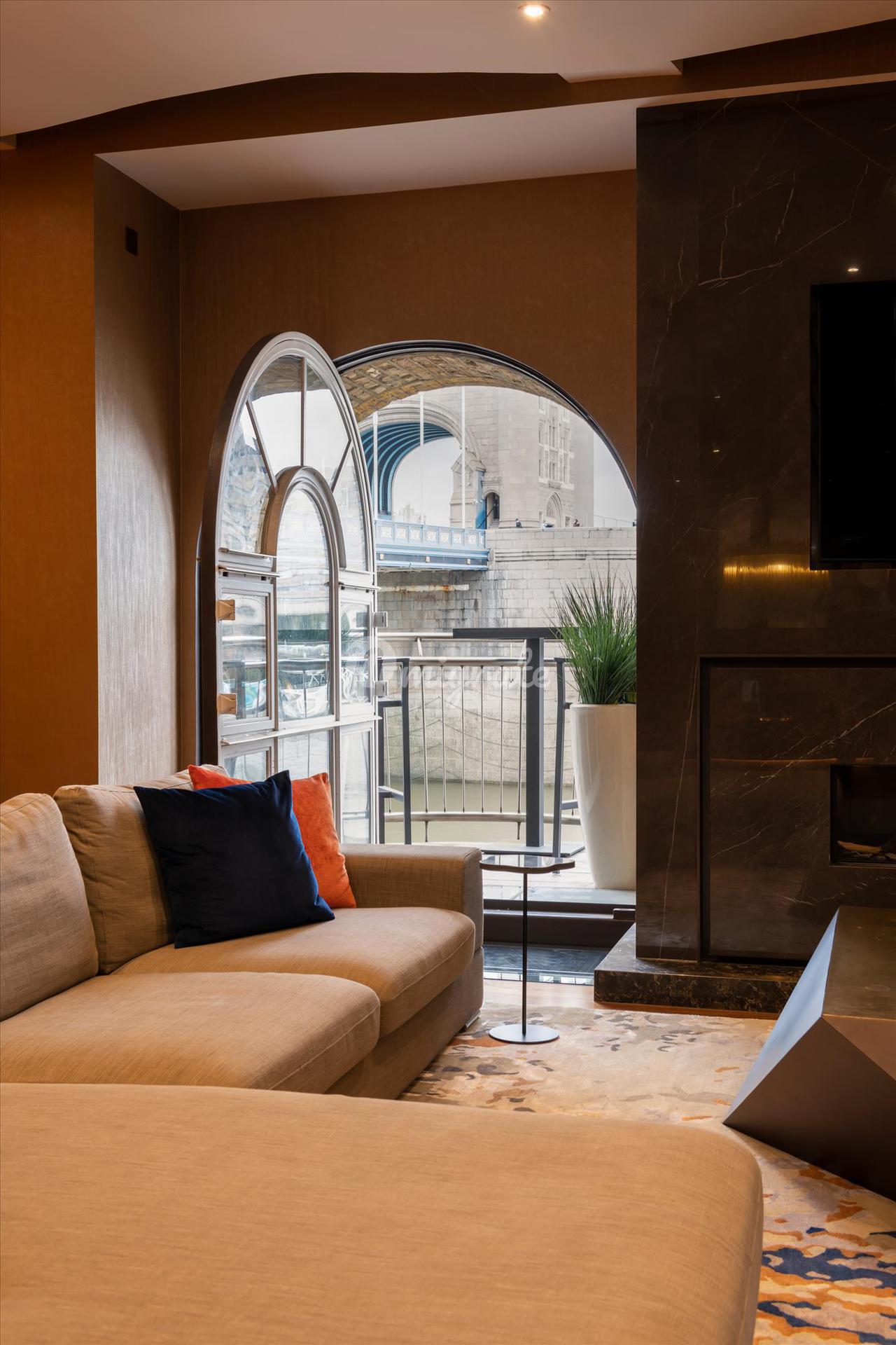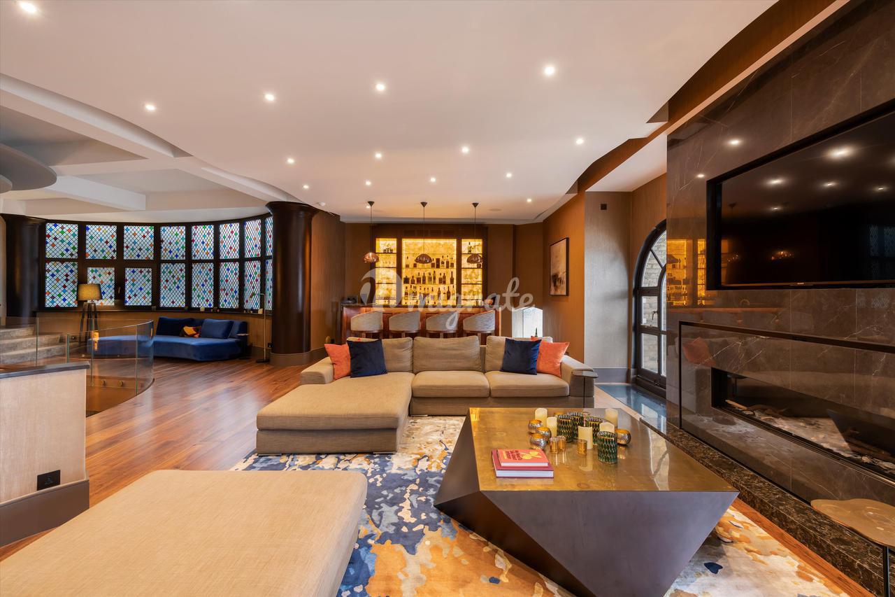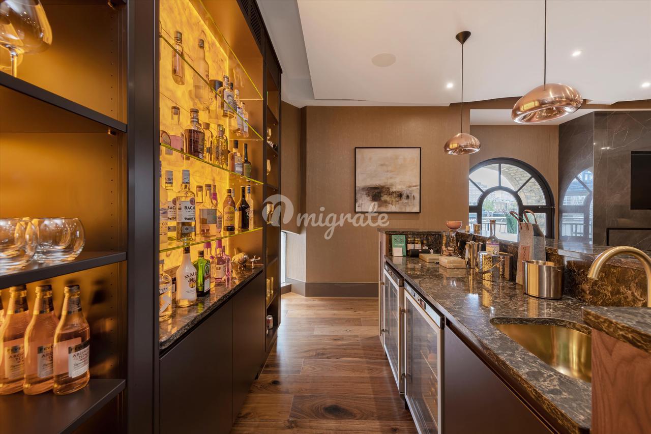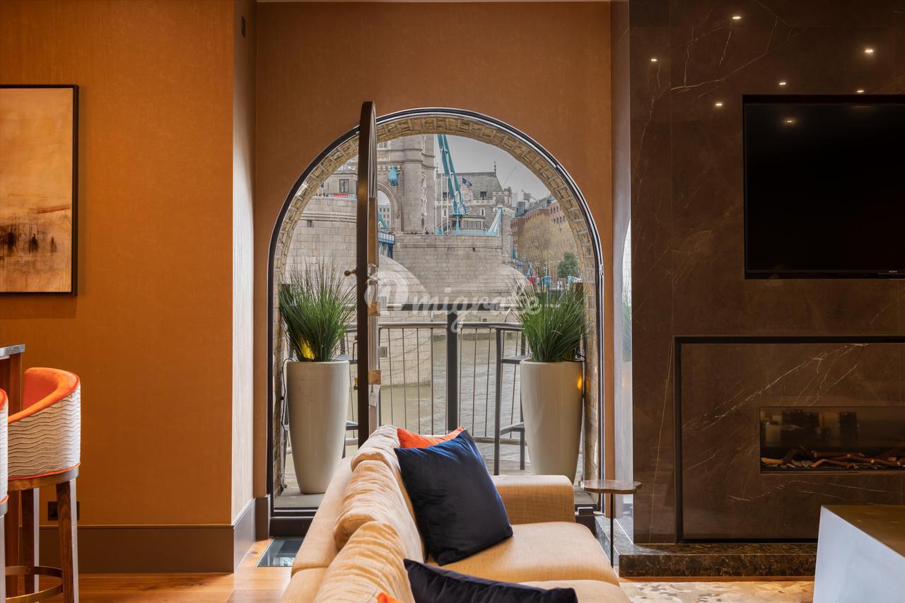 Приемная - это идеальное место для развлечений, в комплекте с собственным потрясающим баром, ленточным газовым камином и двумя живописными арочными дверными проемами, из которых открывается захватывающий дух вид на Тауэрский мост, который находится прямо перед зданием. Эти двери выходят на два балкона с видом на Темзу, а по всей квартире установлена электронная система Rako, позволяющая настраивать настроение, включая освещение и шторы.
