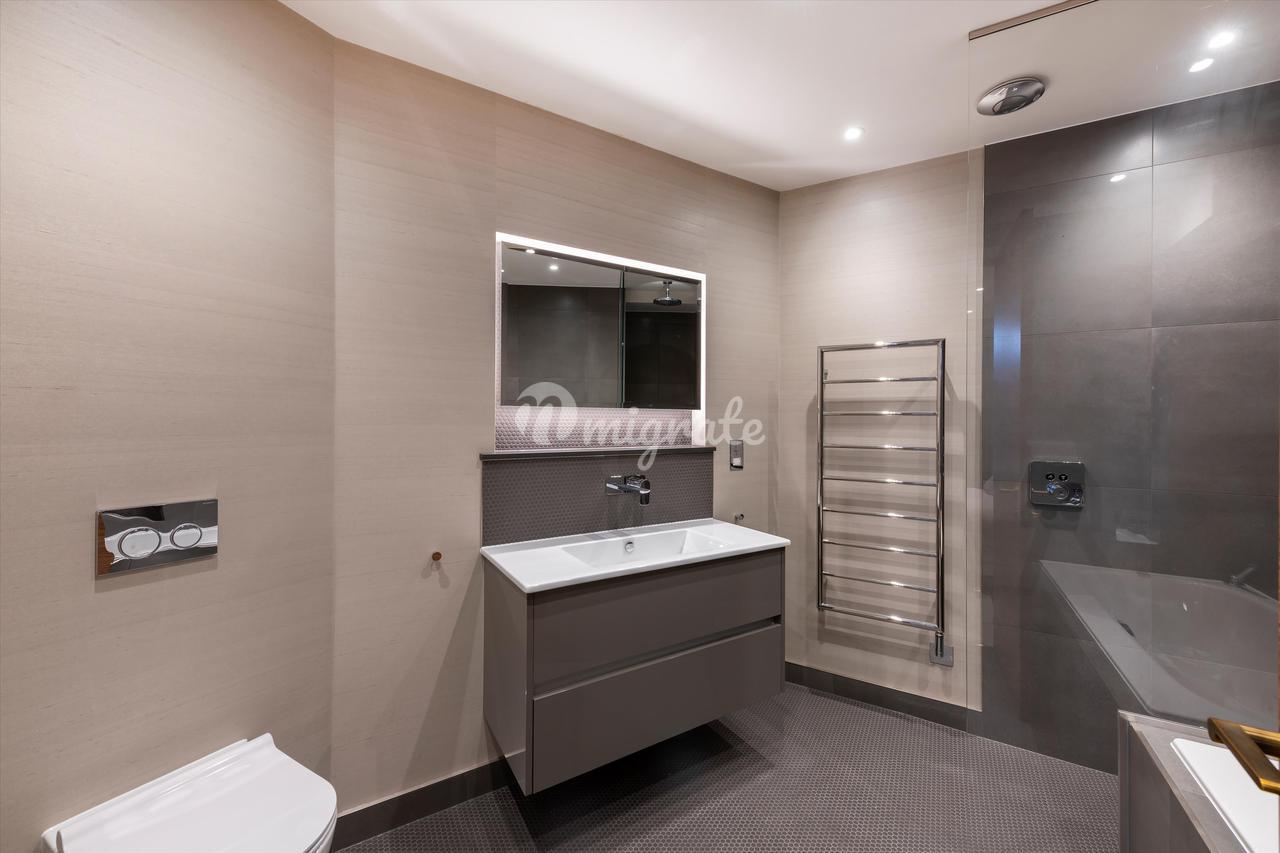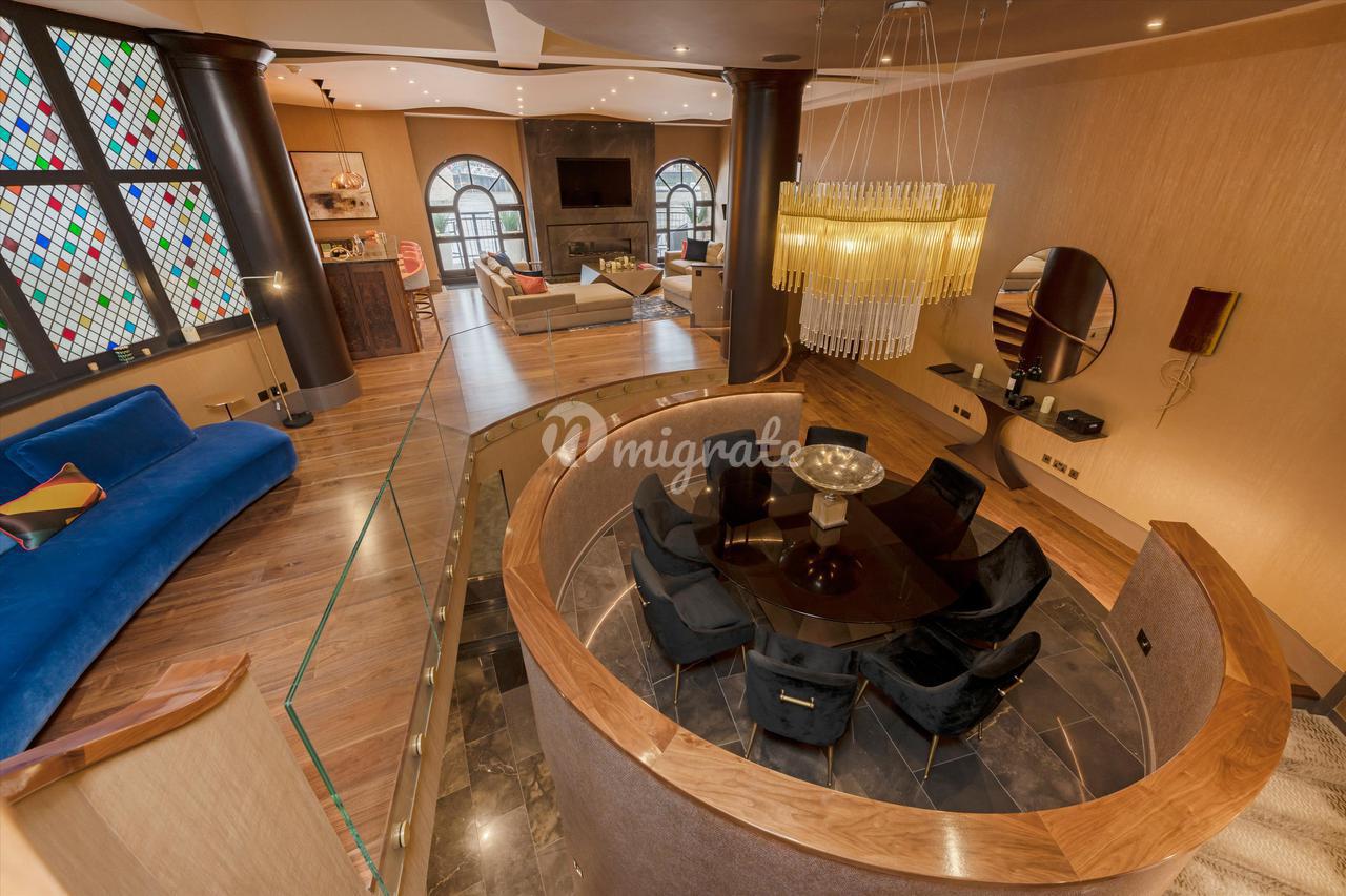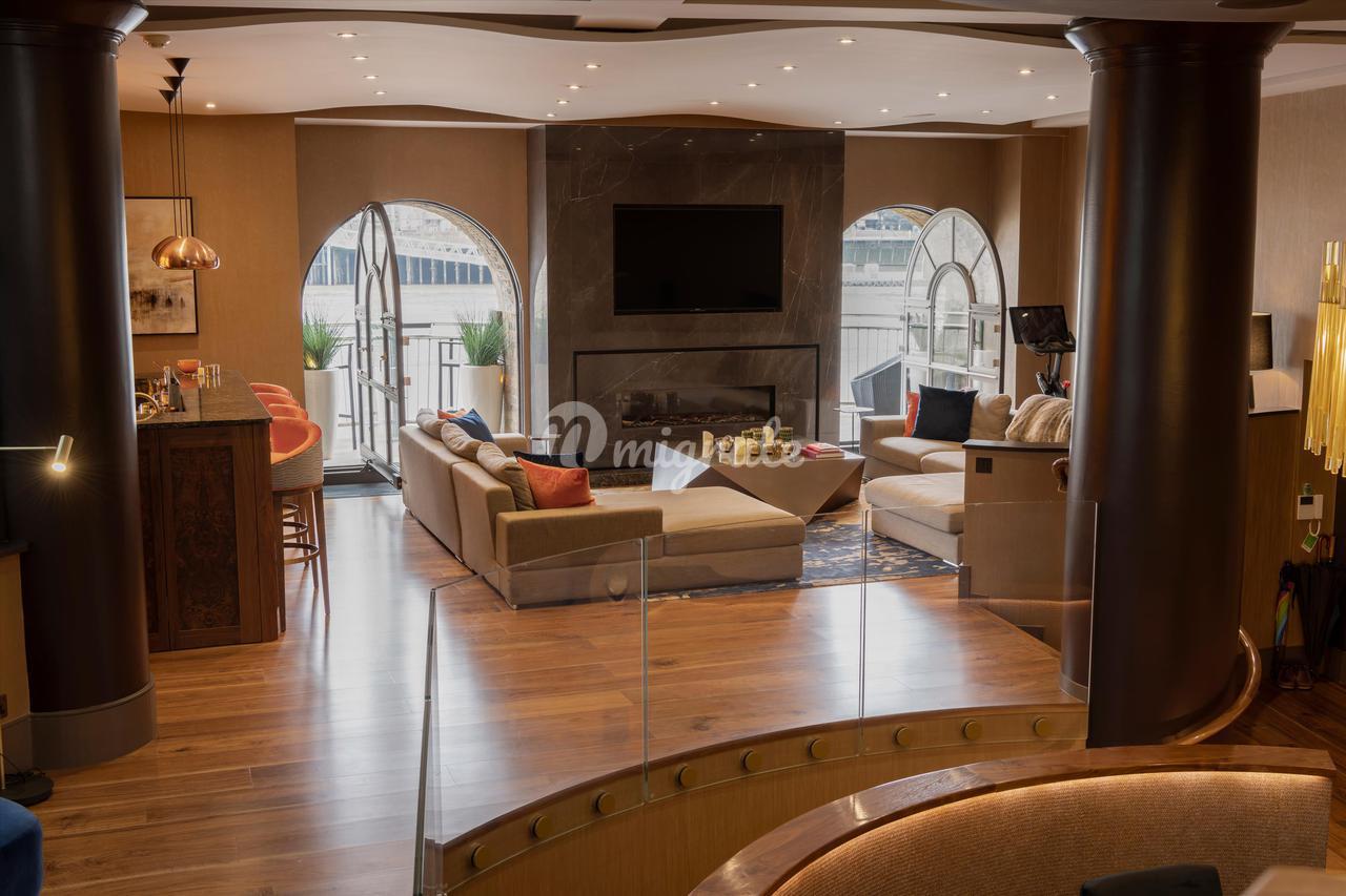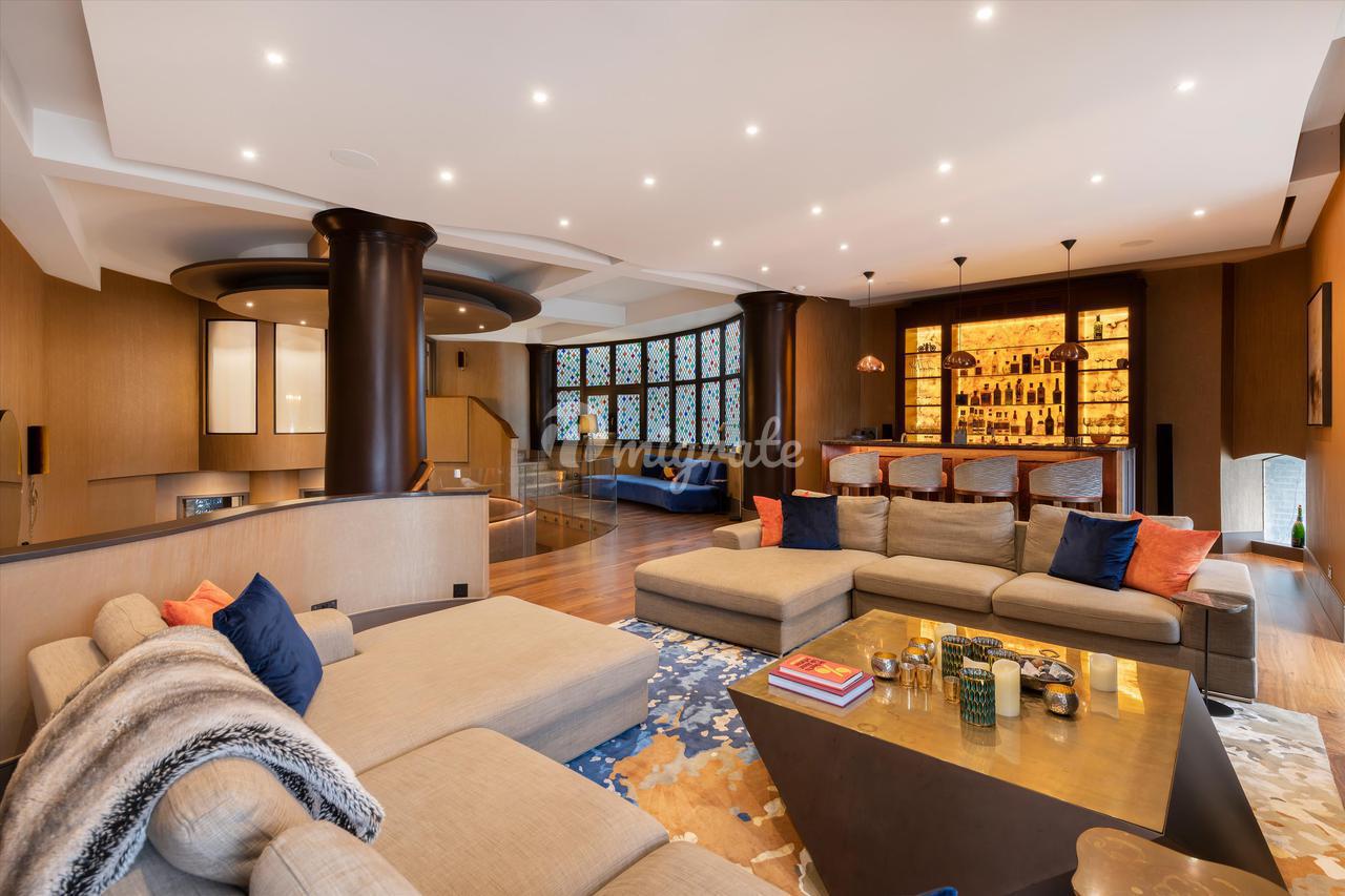 Приемная - это идеальное место для развлечений, в комплекте с собственным потрясающим баром, ленточным газовым камином и двумя живописными арочными дверными проемами, из которых открывается захватывающий дух вид на Тауэрский мост, который находится прямо перед зданием. Эти двери выходят на два балкона с видом на Темзу, а по всей квартире установлена электронная система Rako, позволяющая настраивать настроение, включая освещение и шторы.