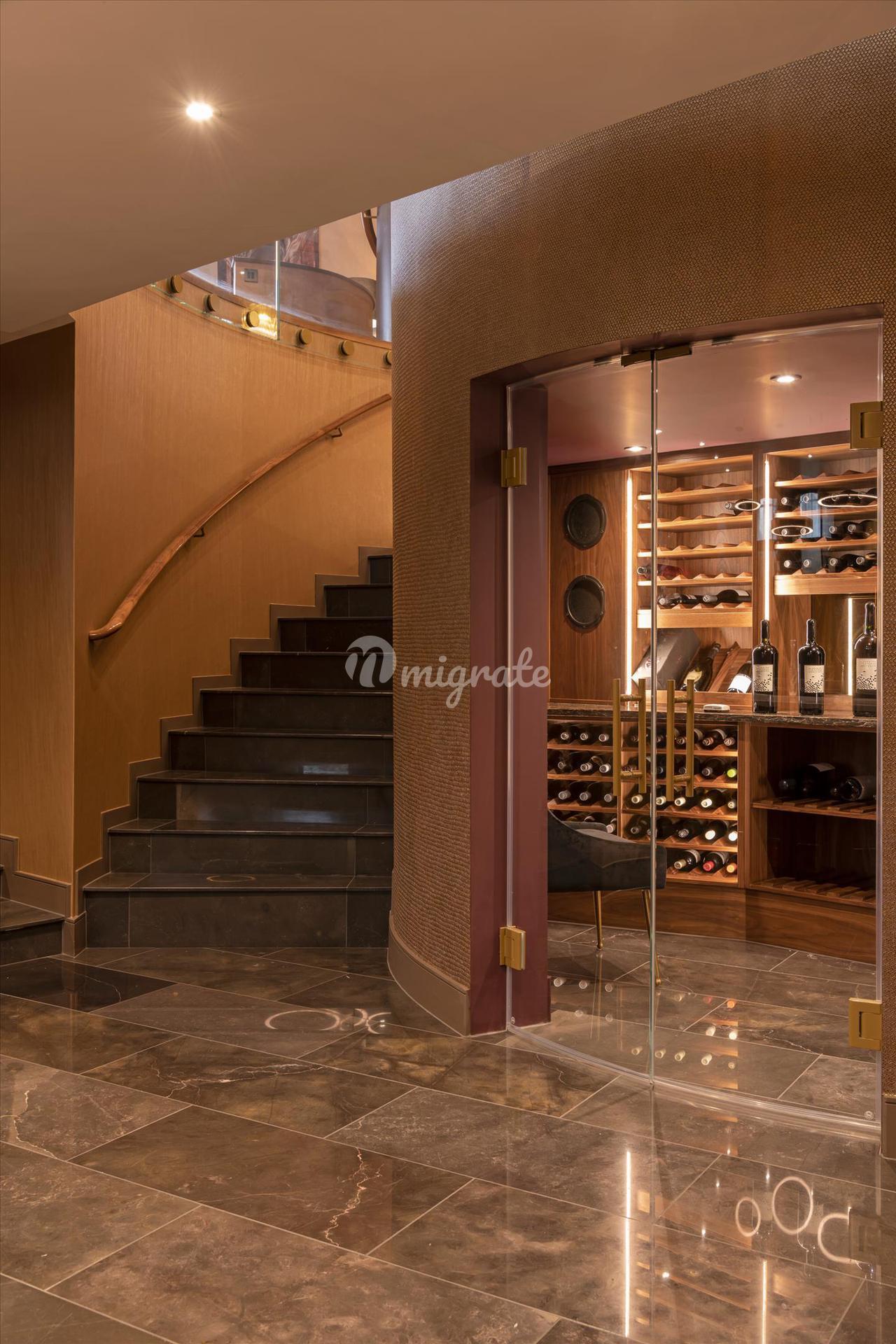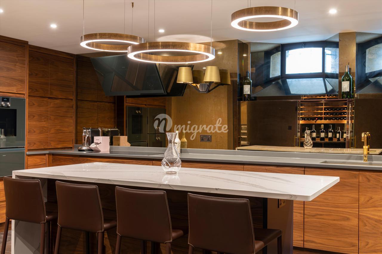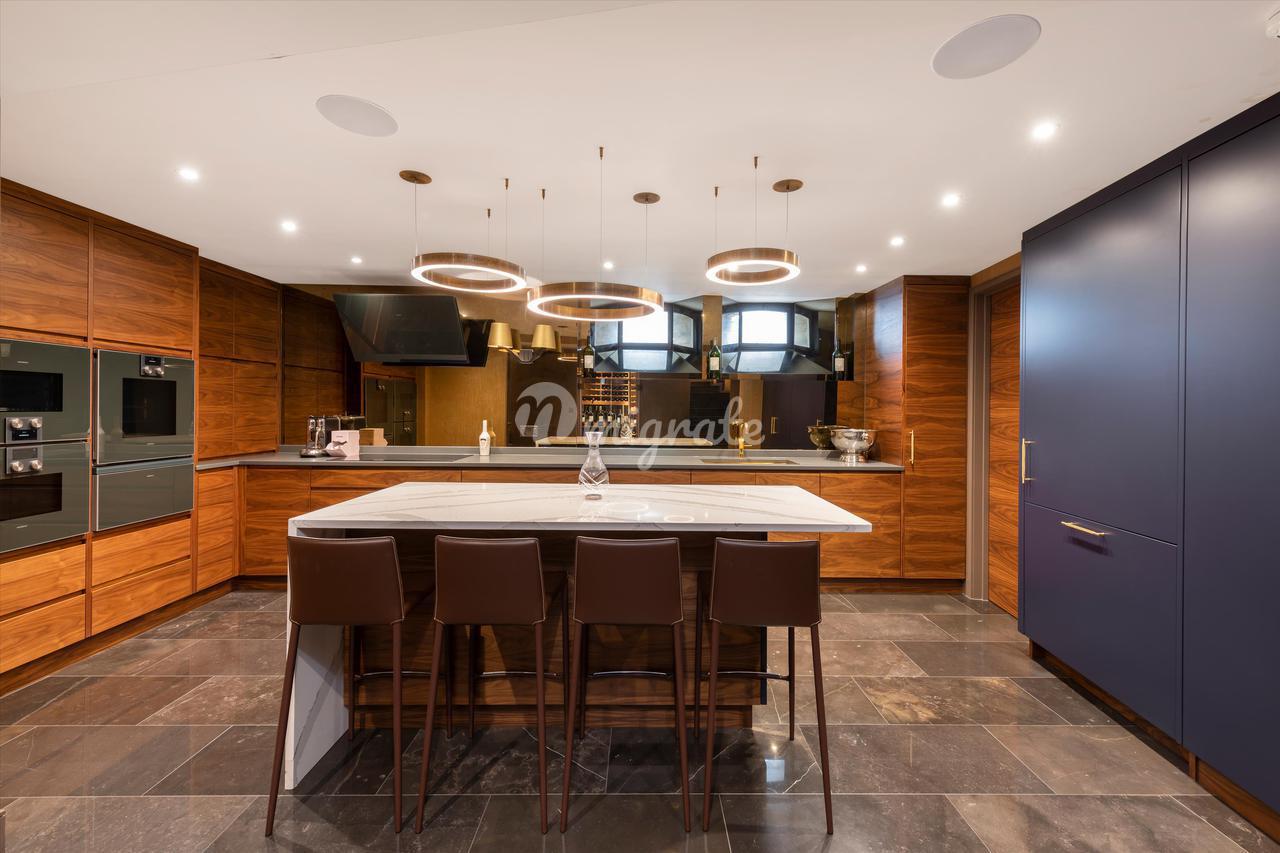 Кухня полностью оборудована по последнему слову техники Gaggenau, а широкий ассортимент встроенных шкафов обеспечивает достаточное пространство для хранения вещей. Далее есть удобное отдельное подсобное помещение. Винный погреб со стеклянным фасадом с регулируемой температурой находится идеально подходит для хранения вашей коллекции вин и оснащен надежным дистанционным запирающим устройством.