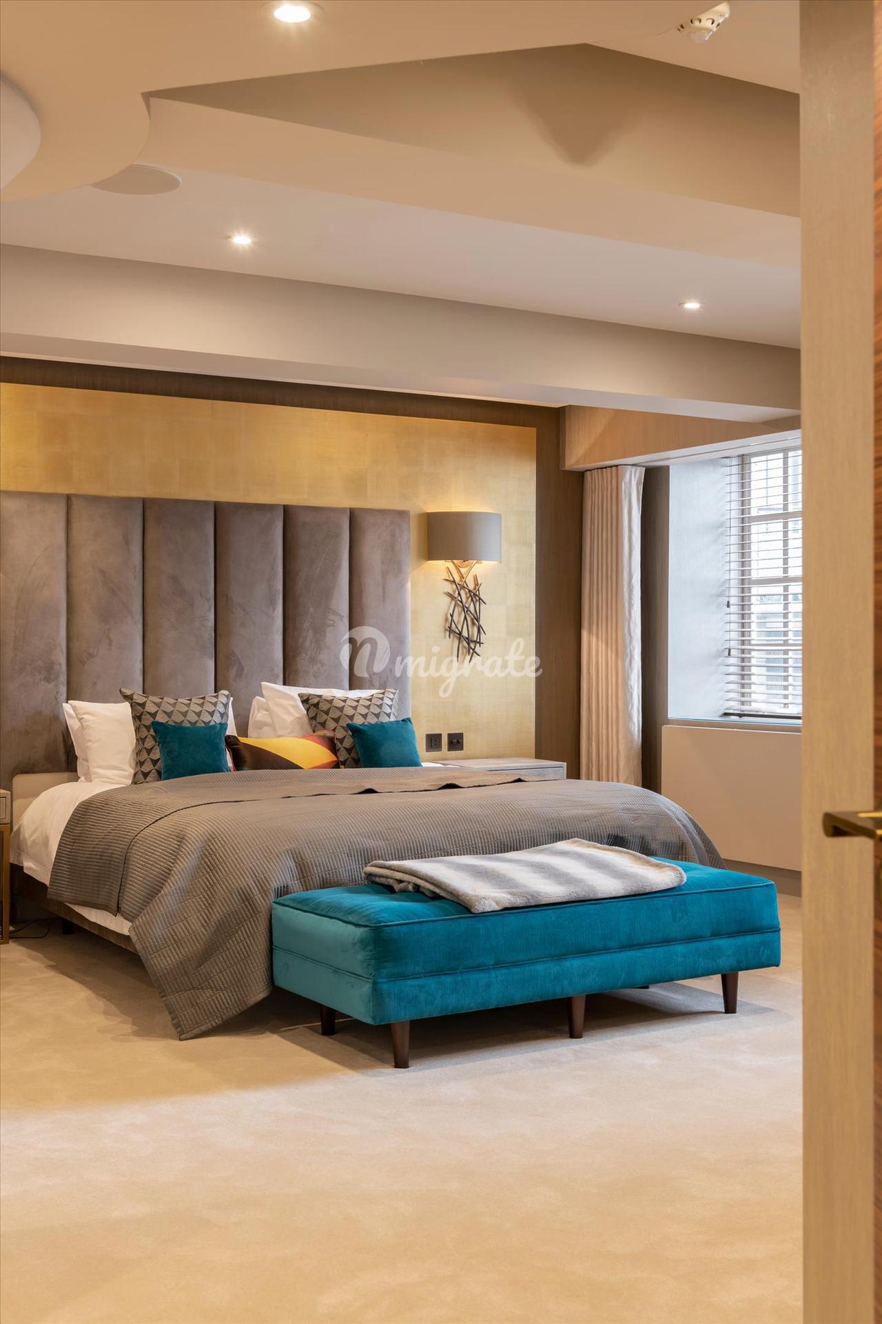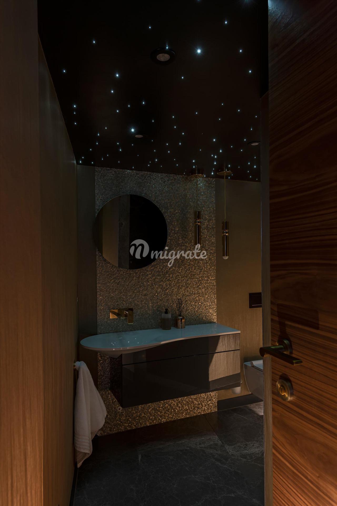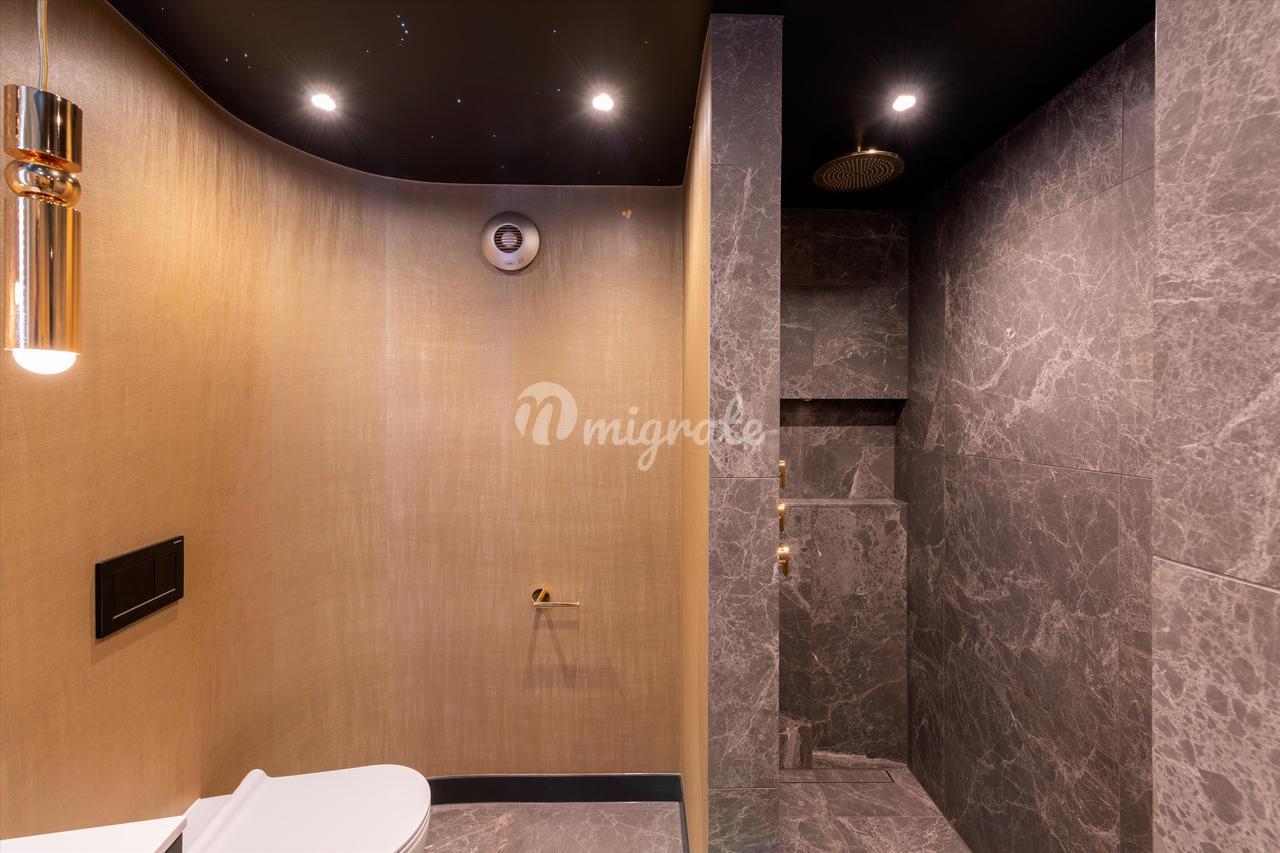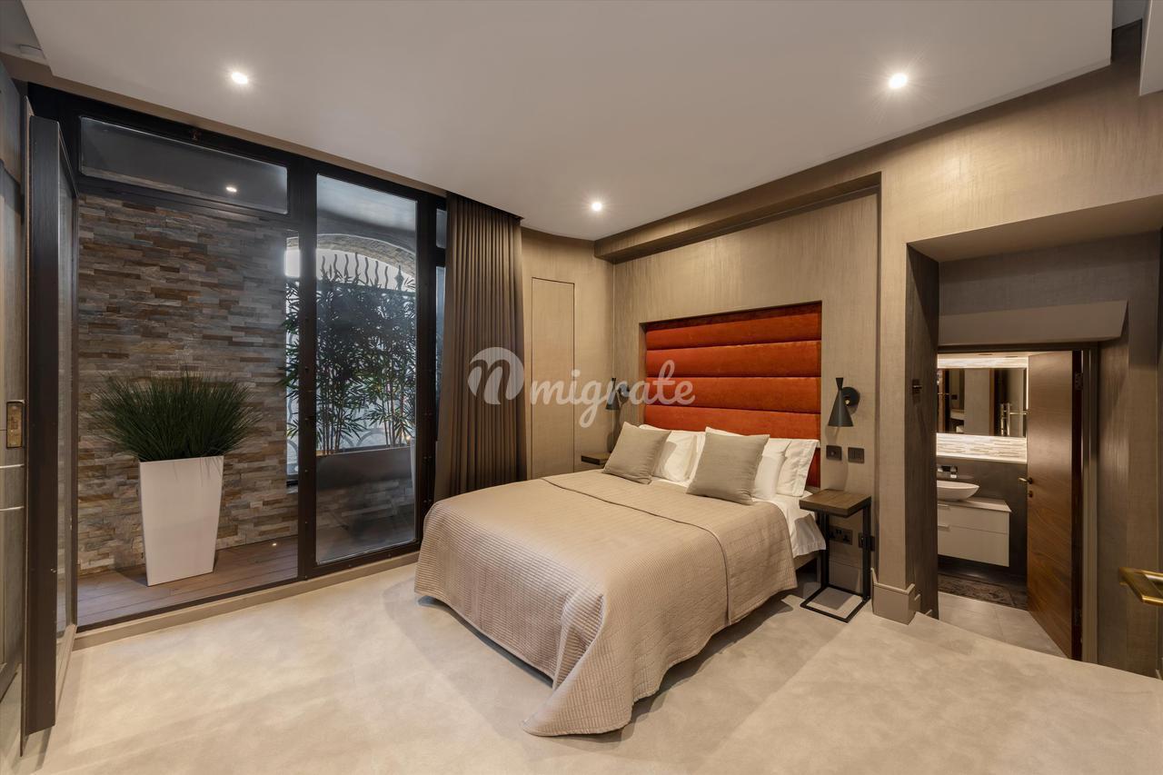 В отеле есть три просторных спальных люкса, все они были искусно спроектированы. На верхнем уровне находится роскошный основной люкс с гардеробной и потрясающей ванной комнатой, оснащенной двумя раковинами и отдельной ванной с телевизором и душем. Прозрачность спальни windows можно менять одним нажатием кнопки, обеспечивая полную конфиденциальность. На нижнем уровне есть еще две красиво оформленные спальни с ванными комнатами, обе из которых имеют выход на небольшую освещенную террасу.