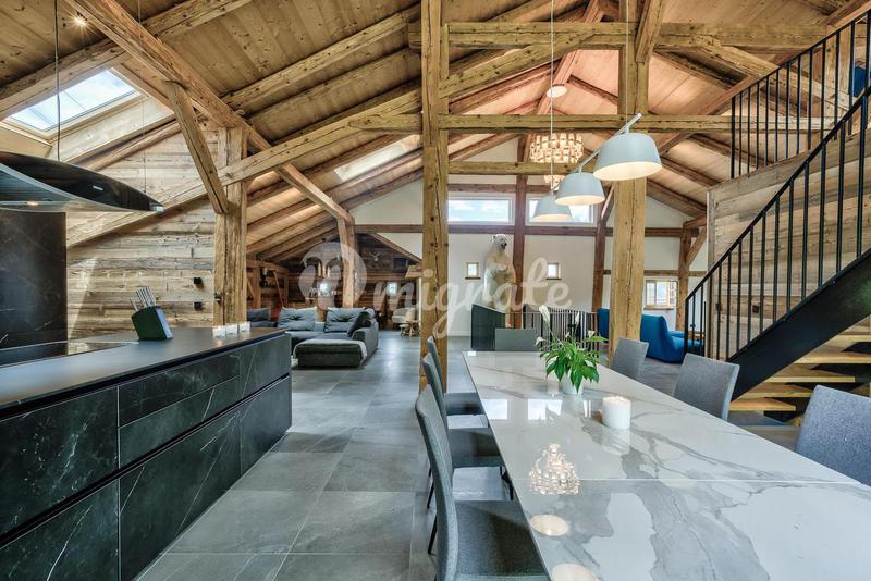 Шале, перестроенное в 2005 году, было отделано по высоким стандартам и прекрасно сочетает в себе роскошь традиционного стиля шале с инновационным современным дизайном. Основная гостиная находится на п