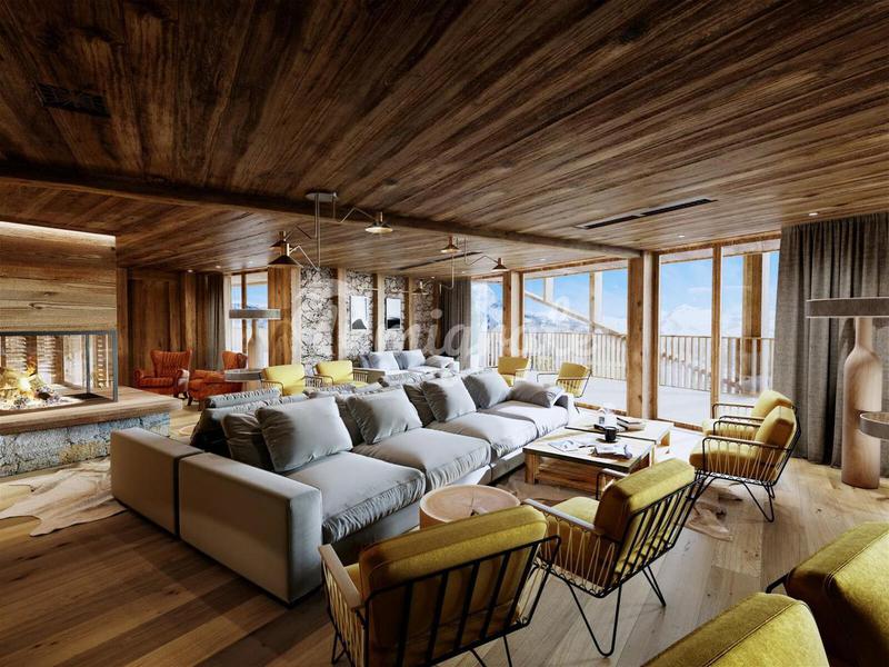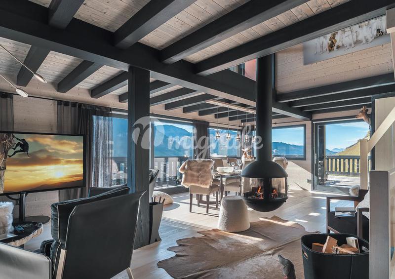Шале, перестроенное в 2005 году, было отделано по высоким стандартам и прекрасно сочетает в себе роскошь традиционного стиля шале с инновационным современным дизайном. Основная гостиная находится на п
