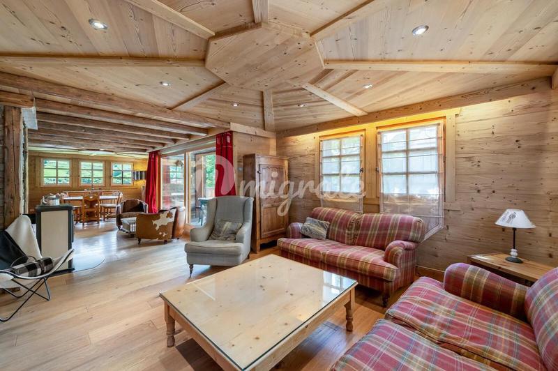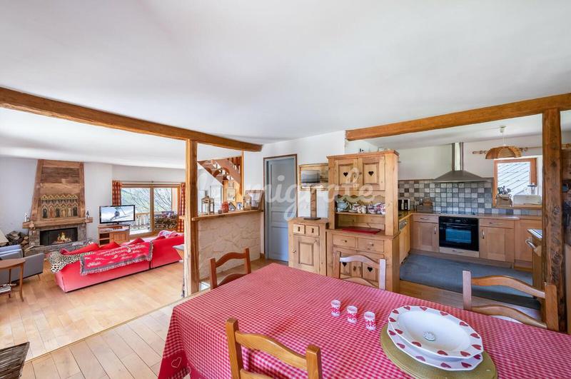 Шале площадью 130 м² с большим потенциалом, расположенное недалеко от центра Комблу и предлагающее прекрасный вид на Монблан. Теперь он состоит из: Первый этаж: Двойная гостиная с камином и юго-восточ