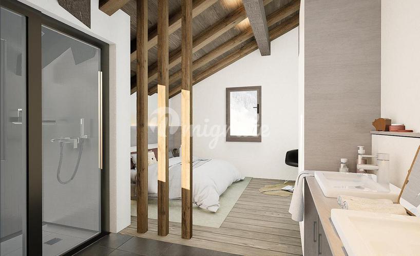 Расположенный на тихом участке с великолепным видом на Монблан, дом будет состоять из 3 этажей, включая жилое пространство двойной высоты, кинотеатр/игровую комнату и сауну на нижнем этаже. Строительс