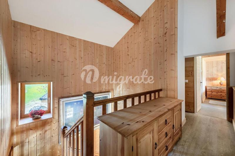 Это шале состоит из четырех спален и трех ванных комнат, отдельной кухни и гостиной с камином, выходящей на большую террасу, выходящую на юго-запад. Это свойство предлагает юго-западную экспозицию с п
