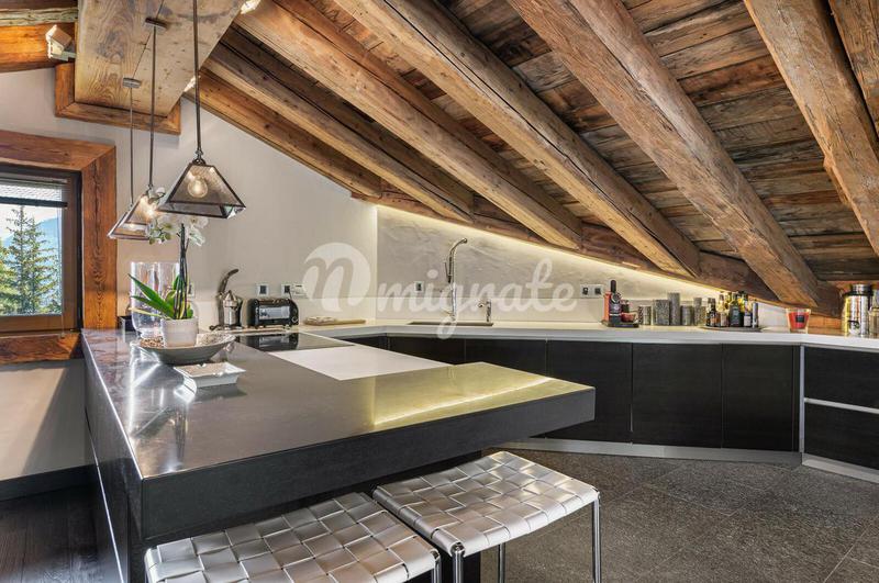 Шале представляет собой типичное альпийское шале из темного дерева и с высококачественной отделкой. Основная жилая площадь находится на первом этаже с гостиной двойной высоты, ведущей на большую солне