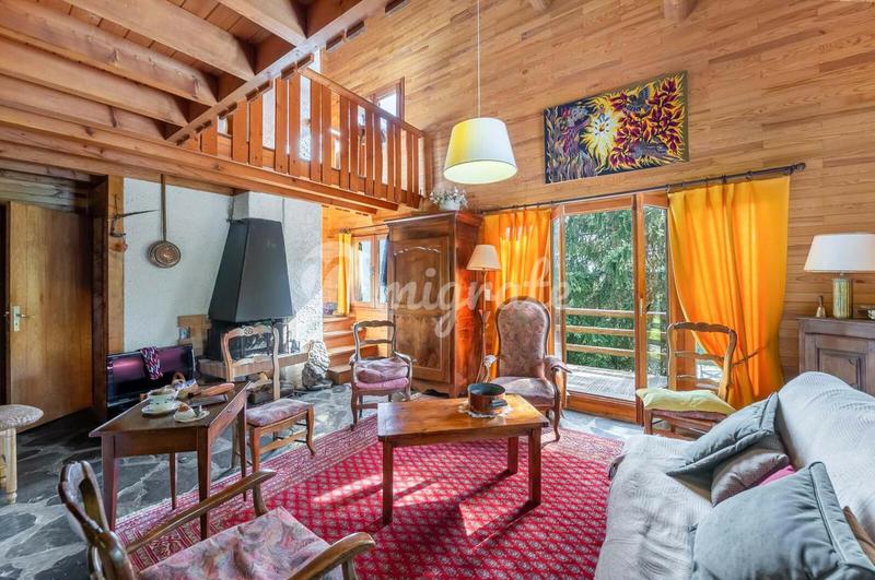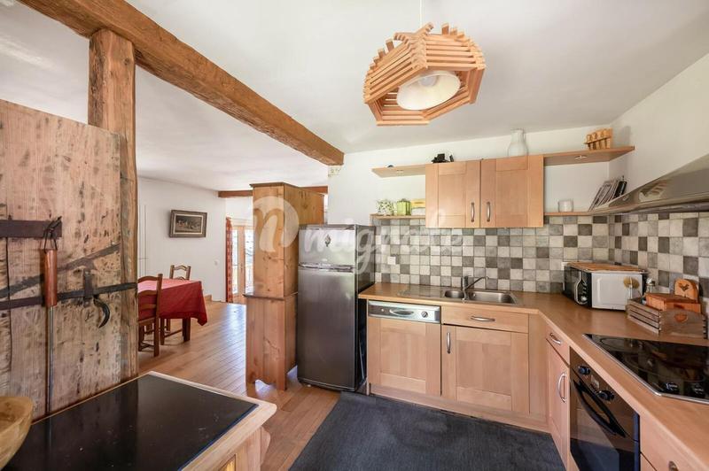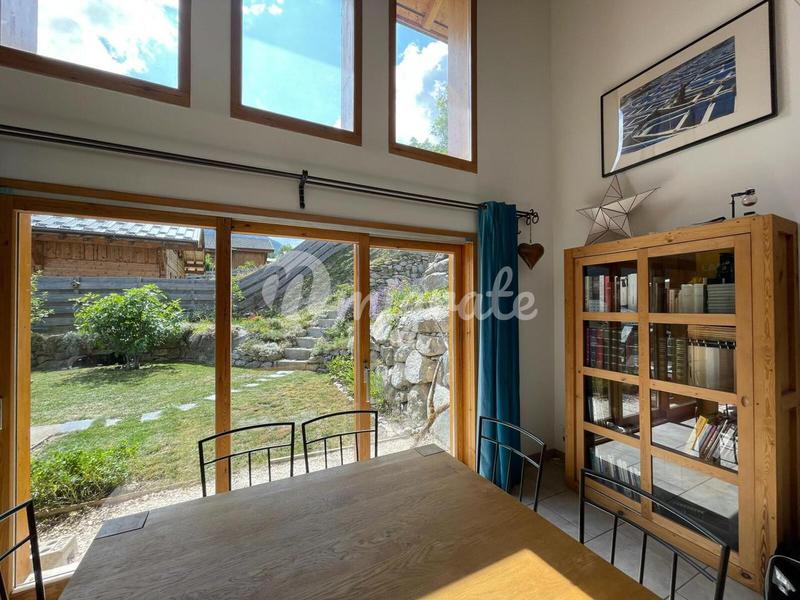 Это шале состоит из четырех спален и трех ванных комнат, отдельной кухни и гостиной с камином, выходящей на большую террасу, выходящую на юго-запад. Это свойство предлагает юго-западную экспозицию с п