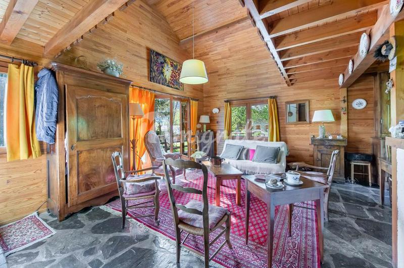 Это шале состоит из кухни, выходящей в гостиную, 4 спален и 2 ванных комнат на 3 этажах. В нем также есть светлый мезонин, 2 гаража, 1 мастерская и подсобное помещение. Построенное в 1950-х годах на р