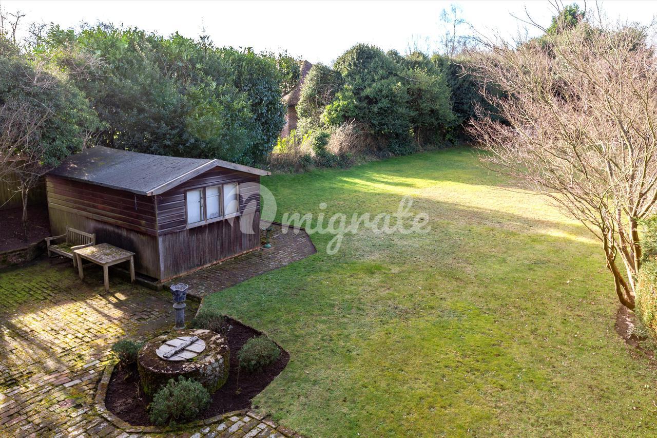 В заднем саду есть три садовых сарая, а также встроенный гараж с раздвижными дверями.