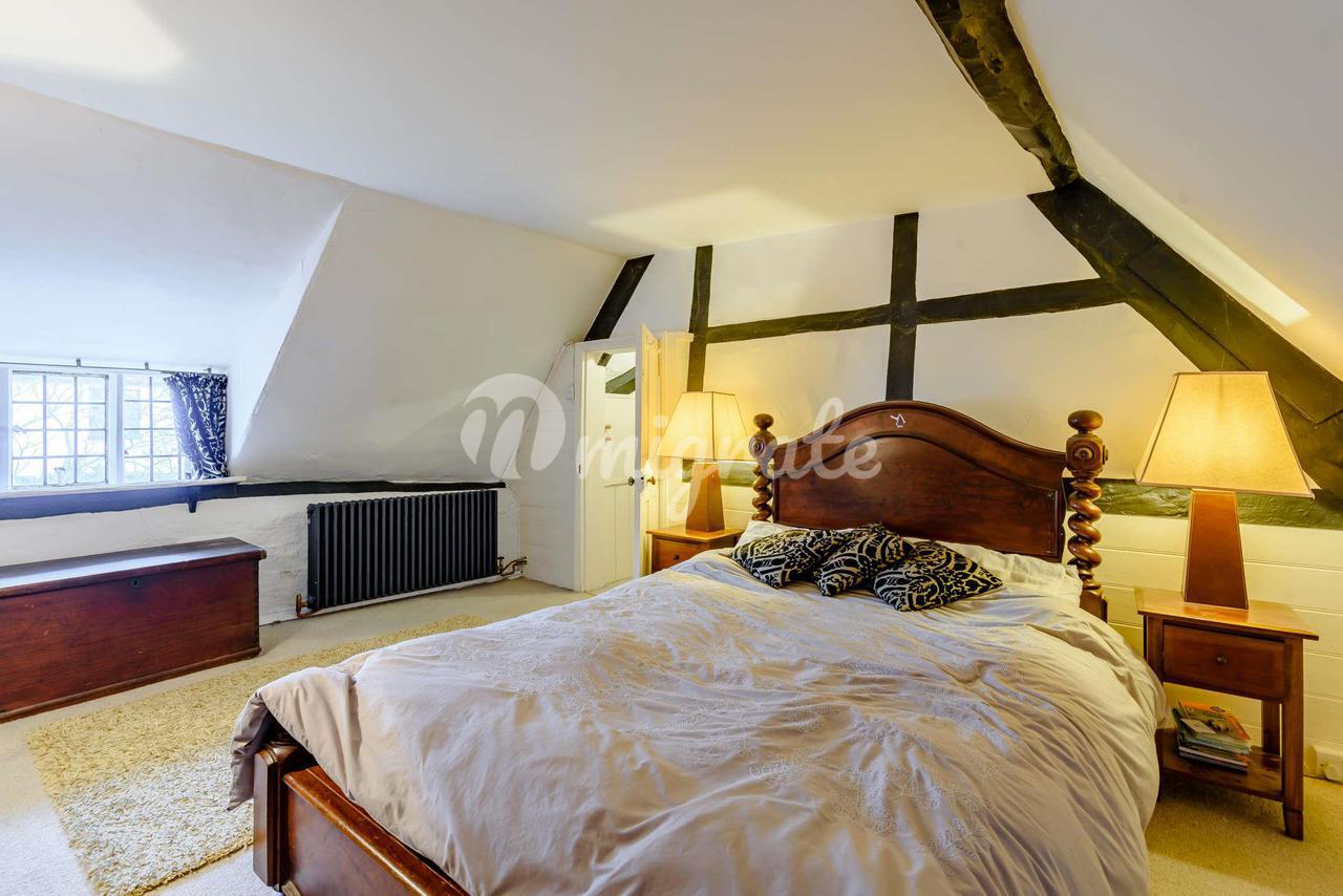 Наверху есть две большие спальни с двуспальными кроватями по обеим сторонам коттеджа, спальня с односпальной кроватью и семейная ванная комната.