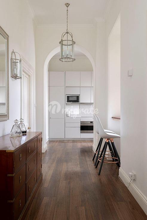 Апартаменты 17 — это красиво и недавно отремонтированные апартаменты на 1 этаже, расположенные в историческом доме Шерборн. В доме элегантные высокие потолки, и это одна из немногих квартир в здании с двойным видом на сады и территорию, на фасад и во внутренний двор. Входная дверь ведет во впечатляющий холл с небольшой зоной для завтрака с видом на внутренний двор и аркой, ведущей на кухню. Полностью оборудована широким ассортиментом настенных и напольных модулей, а также встроенной бытовой техникой Neff, включая двойную духовку, керамическую плиту, микроволновую/комбинированную духовку, посудомоечную машину и холодильник с морозильной камерой. С одной стороны от зала для приемов находится потрясающий главный зал для приемов с большими створчатыми окнами, выходящими на парковую зону, и ставнями во всю длину. Есть центральный действующий камин с каменной окантовкой и мантией наверху, а также много места для обеденного стола. С другой стороны вестибюля находится хорошо оборудованное подсобное помещение со стиральной машиной, сушилкой и встроенными шкафами. Есть две спальни, расположенные рядом с внутренним холлом, основная спальня со встроенными шкафами и душевая комната с большой душевой кабиной. Во второй спальне также есть встроенный шкаф с выходом в ванную комнату Джека и Джилл с душем наверху из спальни и коридора. Обе спальни извлекают выгоду из далеко идущего вида на парк и жалюзи во всю длину.