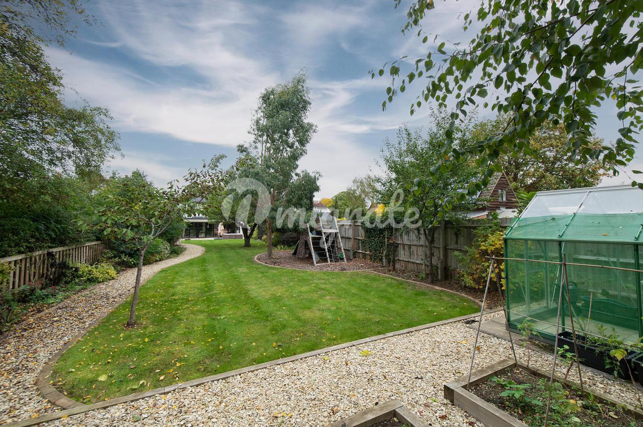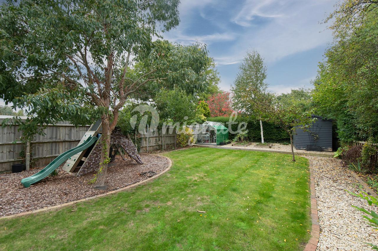 В большом саду, выходящем на восточную сторону, есть новый расширенный внутренний дворик из песчаника, а оставшийся сад разбит на лужайку с разнообразными фруктовыми деревьями. Посыпанная гравием дорожка ведет в верхнюю часть сада, где находится теплица и приподнятые грядки с овощами. Перед домом на подъездной дорожке есть парковка на несколько автомобилей и встроенный гараж на одну машину.