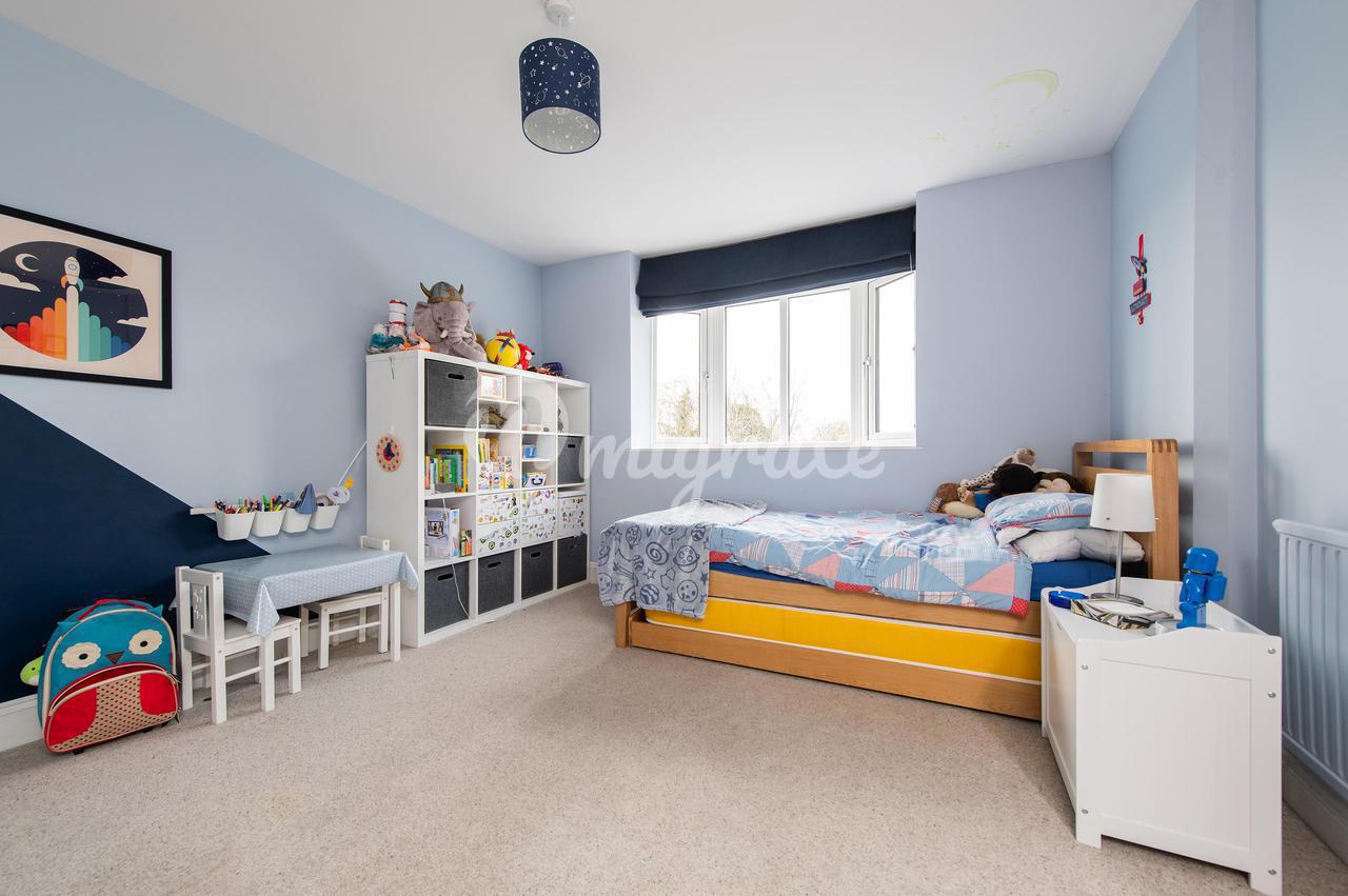 На втором этаже находится просторная главная спальня с собственной душевой комнатой и гардеробной. Еще две спальни с двуспальными кроватями (одна с видом на церковь Святой Троицы из большого эркерного окна) имеют общую семейную ванную комнату. Спальни в задней части дома имеют выход на балкон с видом на сад.